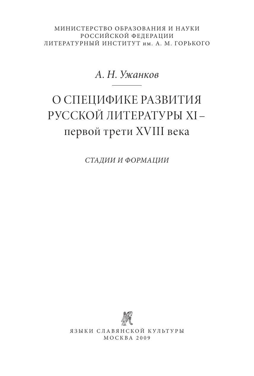 О специфике развития русской литературы XI — первой трети XVIII века: Стадии и формации