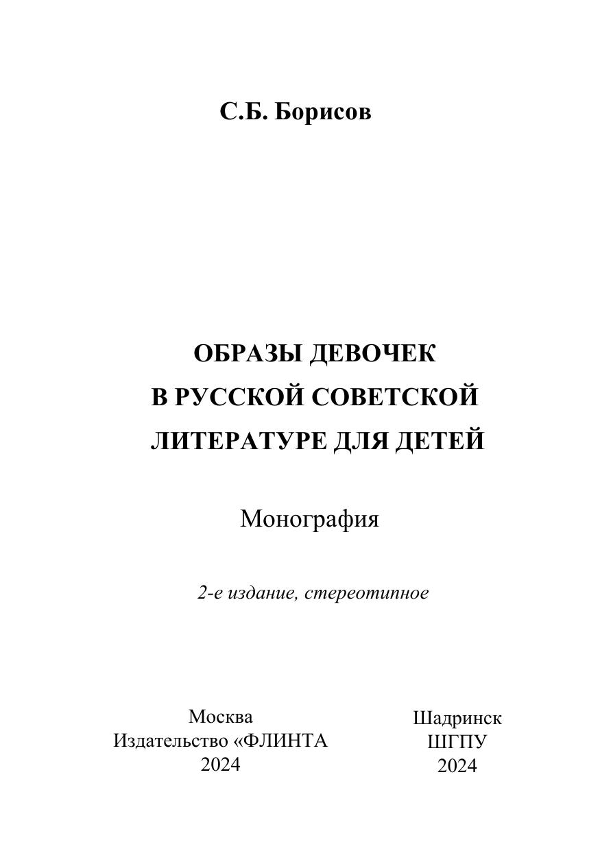 Монография представляет собой первый в отечественной науке опыт типологизации девичьих образов в произведениях русской советской литературы для детей.