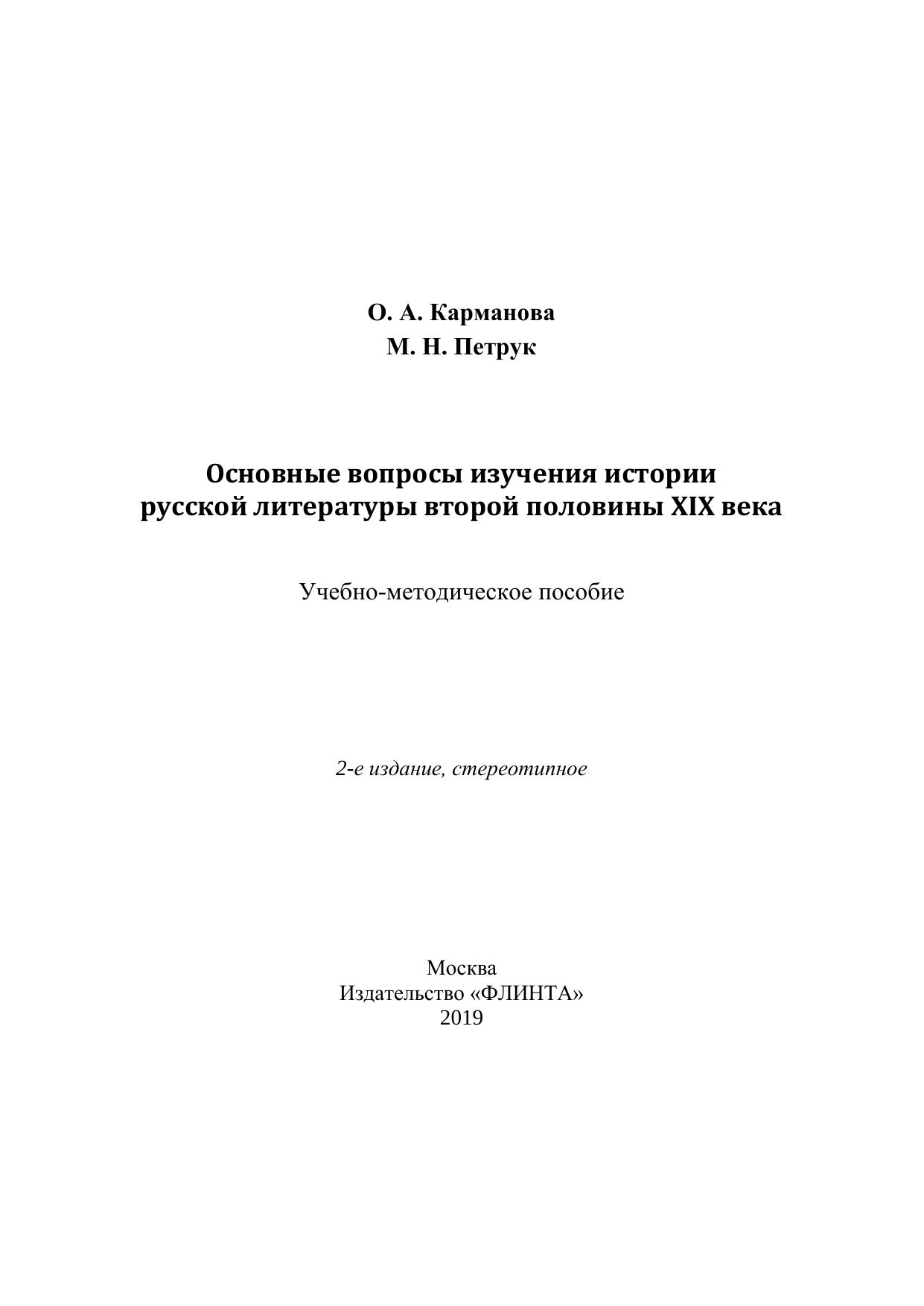 В пособии освещаются актуальные вопросы истории русской литературы второй половины XIX века.
