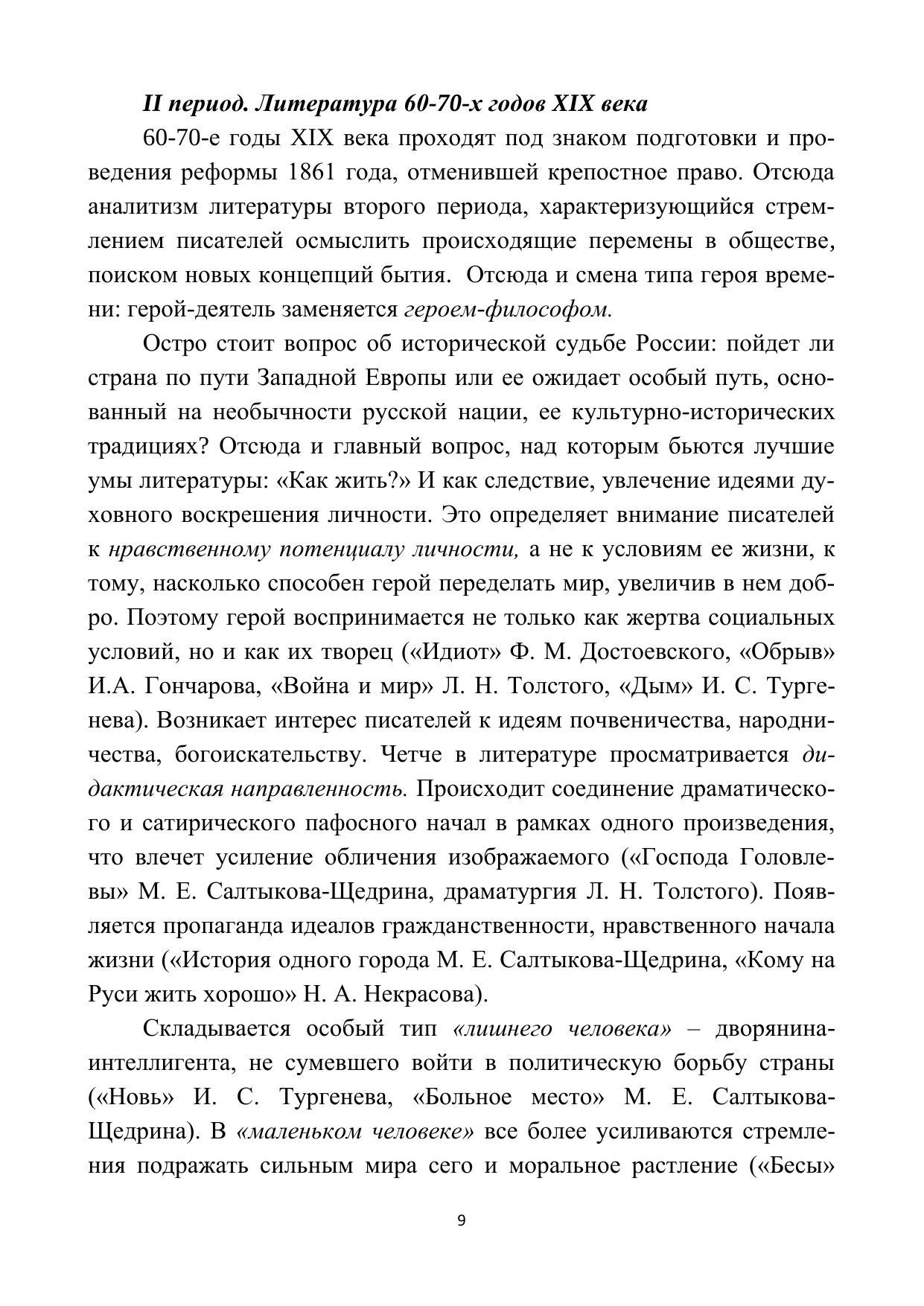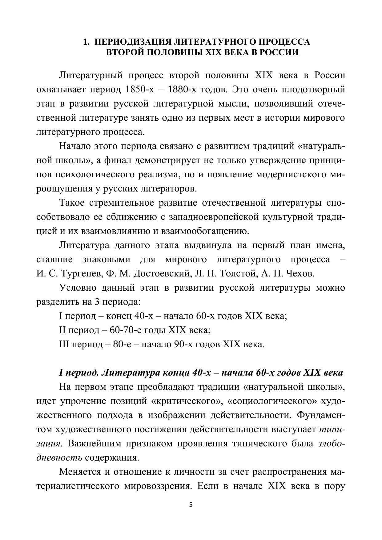 Основные вопросы изучения истории русской литературы второй половины XIX века