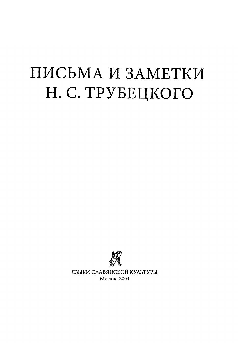Письма и заметки Н.С. Трубецкого