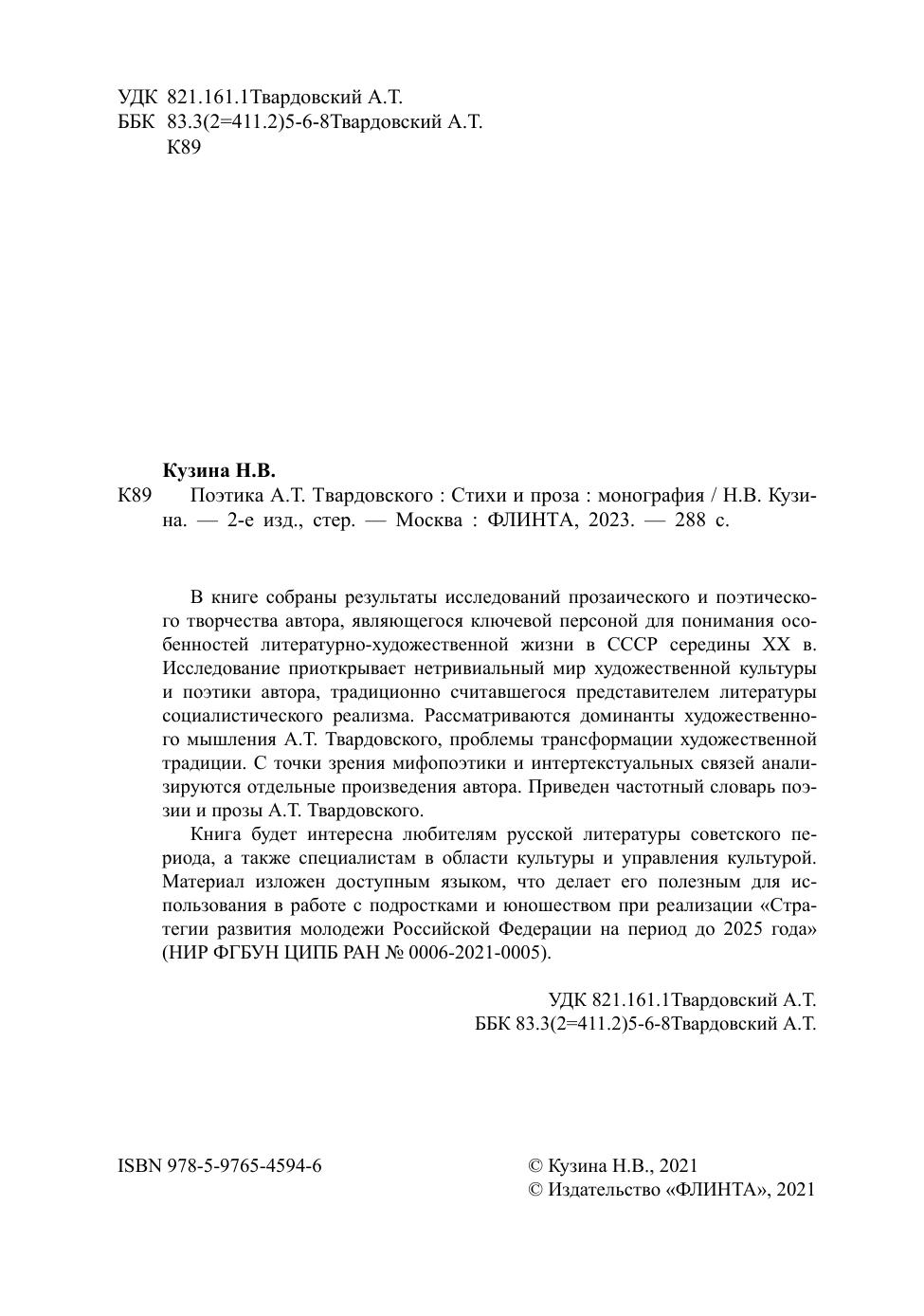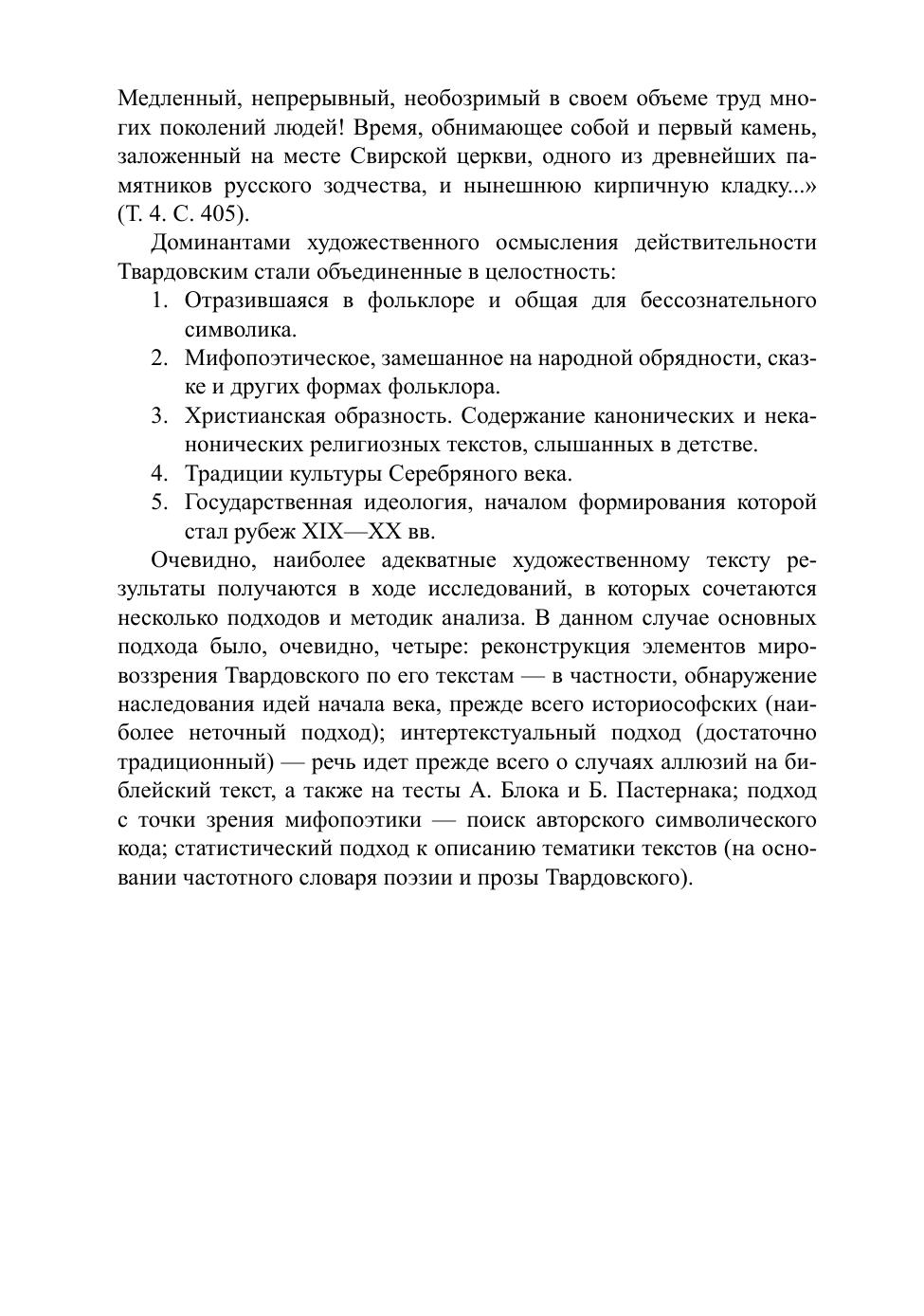В книге собраны результаты исследований прозаического и поэтического творчества автора, являющегося ключевой персоной для понимания особенностей литературно-художественной жизни в СССР середины XX в. Исследование приоткрывает нетривиальный мир художественной культуры и поэтики автора, традиционно считавшегося представителем литературы социалистического реализма. Рассматриваются доминанты художественного мышления А.Т. Твардовского, проблемы трансформации художественной традиции. С точки зрения мифопоэтики и интертекстуальных связей анализируются отдельные произведения автора. Приведен частотный словарь поэзии и прозы А.Т. Твардовского.