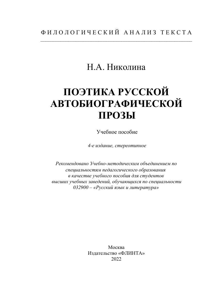 Поэтика русской автобиографической прозы