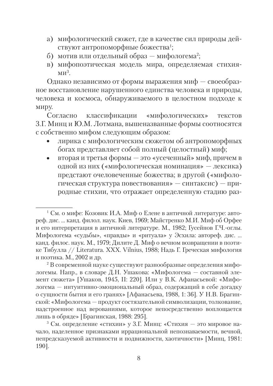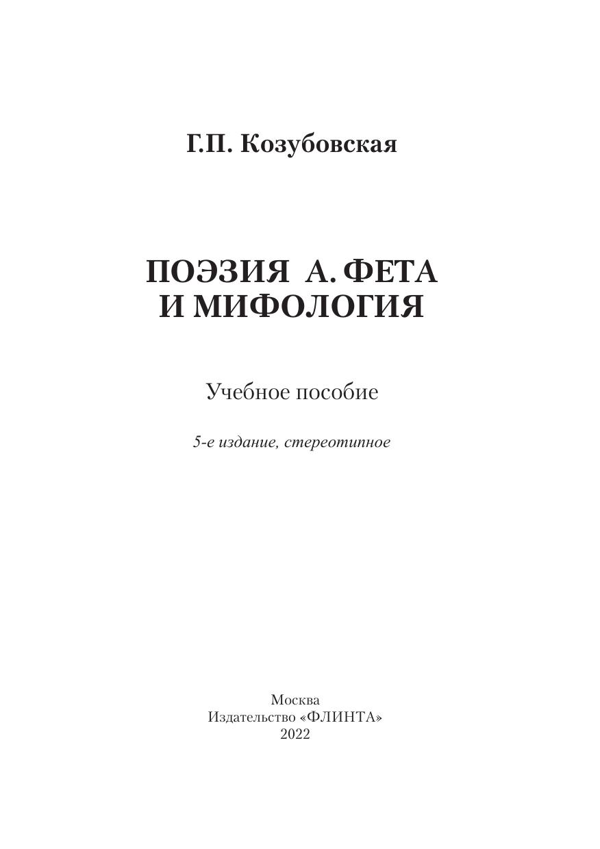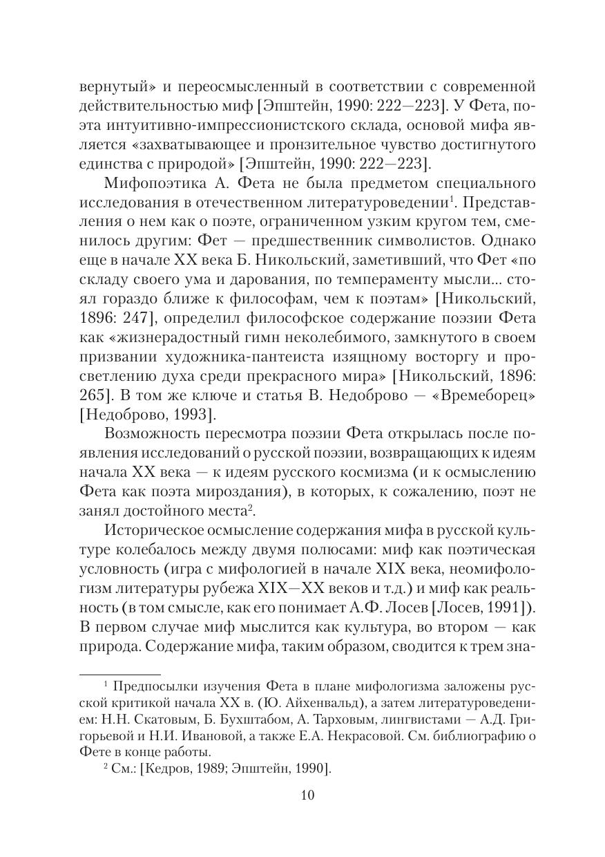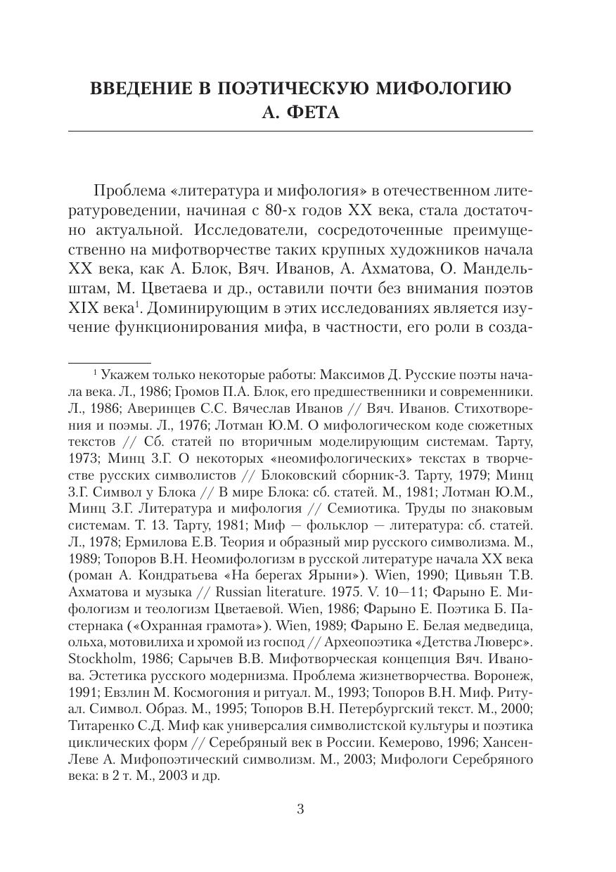 В пособии мифопоэтика А. Фета рассматривается в связи с его «органической» теорией и динамикой поэтического мышления. В центре внимания формирование художественного метода поэта — «ассоциативного символизма». Мир как Космос (мифосимволизм и мифопоэтическая картина мира, лирический субъект и его мета-морфозы и т.д.) и мир как текст (сюжет и мифологический подтекст, «лирические персонажи» и их культурные коды и т.д.) исследуются в органике мира-мифа и в связи с «семантической поэтикой» Фета, преломляющей законы Космоса.