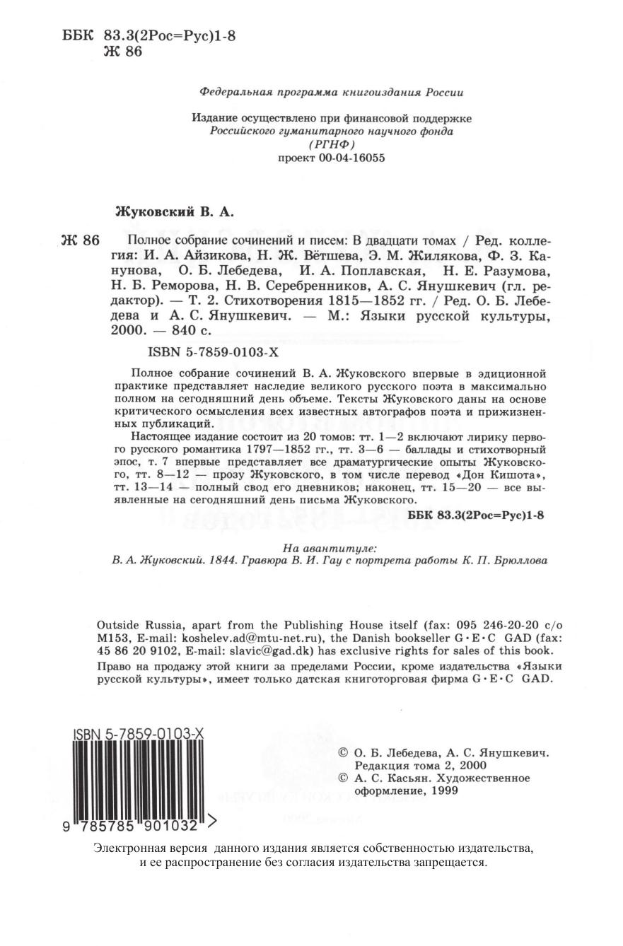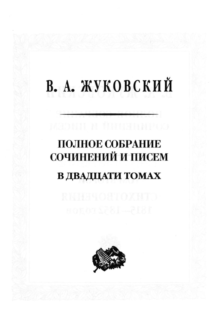 Полное собрание сочинений В. А. Жуковского впервые в эдиционной практике представляет наследие великого русского поэта в максимально полном на сегодняшний день объеме. Тексты Жуковского даны на основе критического осмысления всех известных автографов поэта и прижизненных публикаций. Настоящее издание состоит из 20 томов: тт. 1—2 включают лирику первого русского романтика 1797—1852 гг., тт. 3—6 – баллады и стихотворный эпос, т. 7 впервые представляет все драматургические опыты Жуковского, тт. 8—12 – прозу Жуковского, в том числе перевод «Дон Кишота», тт. 13—14 – полный свод его дневников, наконец, тт. 15—20 – все выявленные на сегодняшний день письма Жуковского.