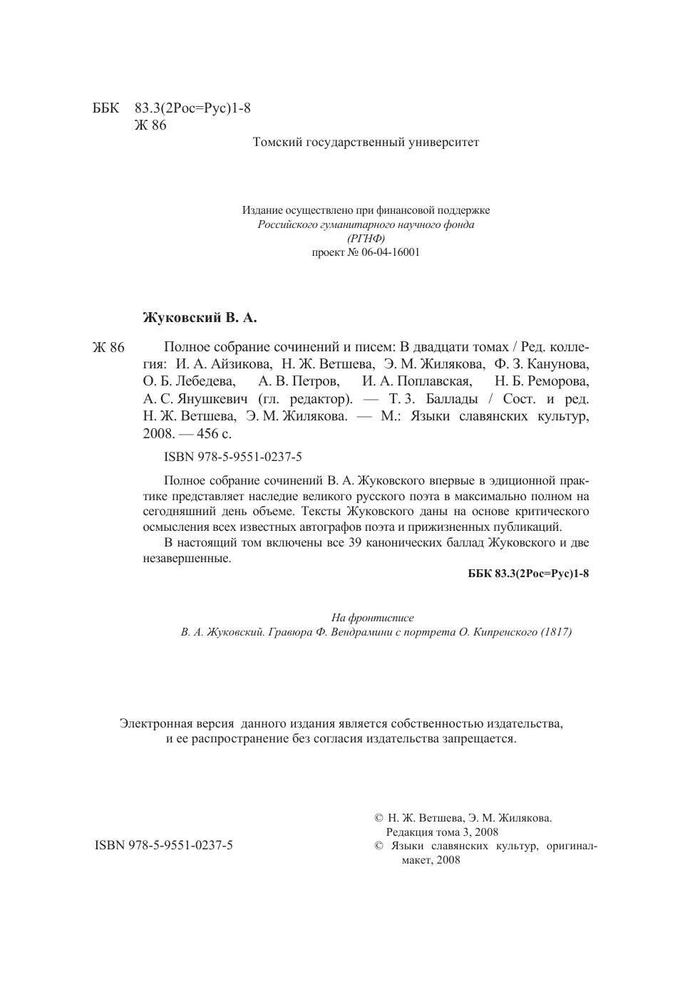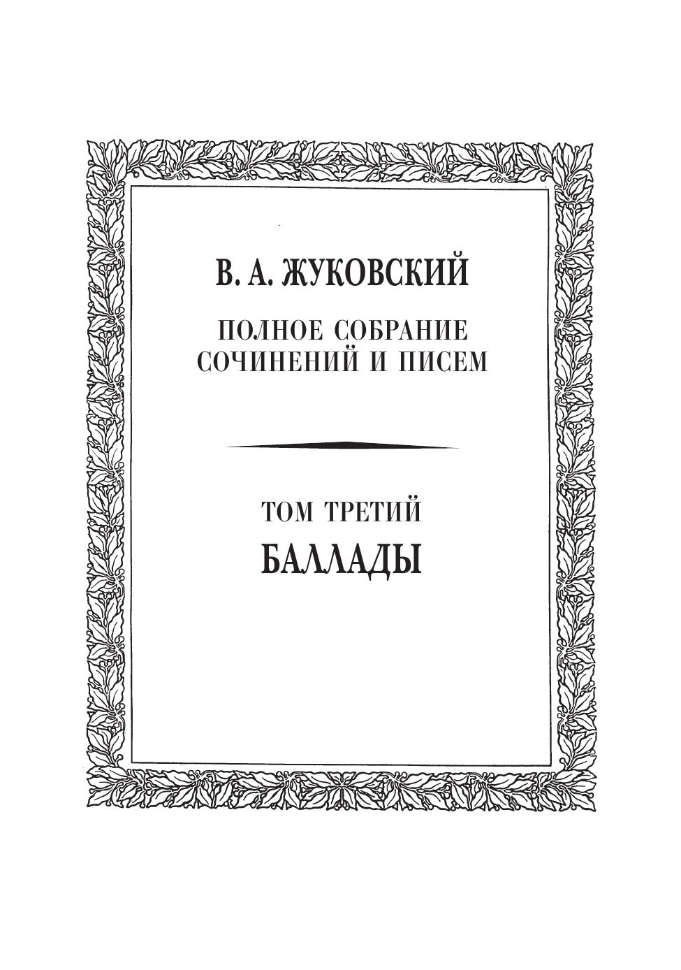 Полное собрание сочинений В. А. Жуковского впервые в эдиционной практике представляет наследие великого русского поэта в максимально полном на сегодняшний день объеме. Тексты Жуковского даны на основе критического осмысления всех известных автографов поэта и прижизненных публикаций. В настоящий том включены все 39 канонических баллад Жуковского и две незавершенные.