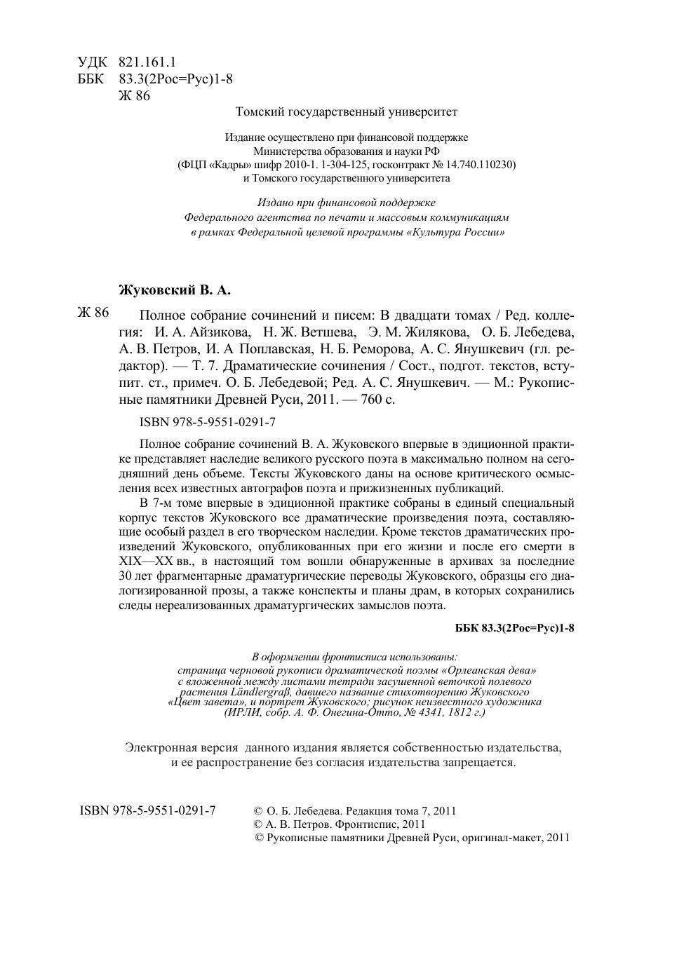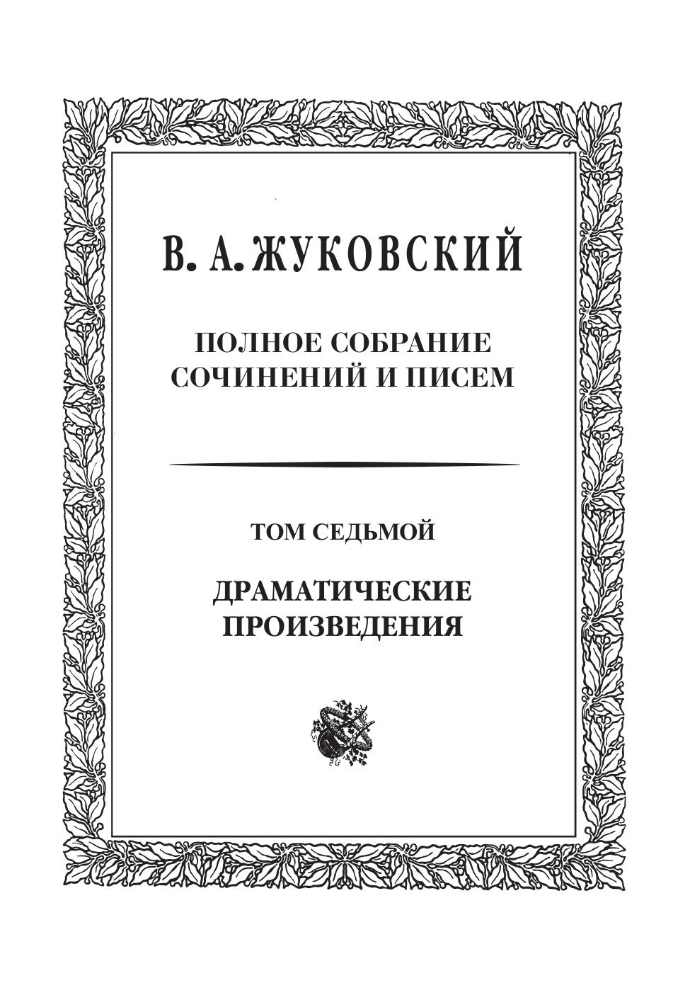 Полное собрание сочинений В. А. Жуковского впервые в эдиционной практике представляет наследие великого русского поэта в максимально полном на сегодняшний день объеме. Тексты Жуковского даны на основе критического осмысления всех известных автографов поэта и прижизненных публикаций. В 7-м томе впервые в эдиционной практике собраны в единый специальный корпус текстов Жуковского все драматические произведения поэта, составляющие особый раздел в его творческом наследии. Кроме текстов драматических произведений Жуковского, опубликованных при его жизни и после его смерти в XIX–XX вв., в настоящий том вошли обнаруженные в архивах за последние 30 лет фрагментарные драматургические переводы Жуковского, образцы его диалогизированной прозы, а также конспекты и планы драм, в которых сохранились следы нереализованных драматургических замыслов поэта.