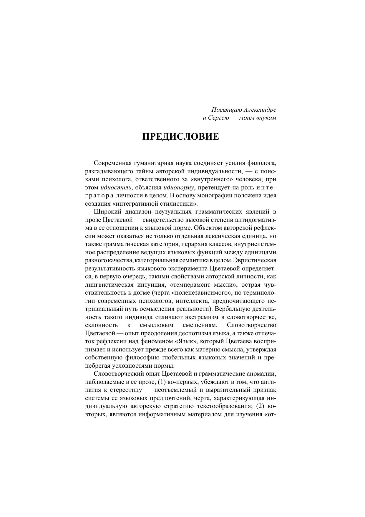 Книга содержит концептуально целостное осмысление авторского стиля как системы доминант, коррелирующих с психологическим портретом автора. Проза Цветаевой изучается как единое вербальное пространство, - на материале автобиографических произведений, литературно-критических статей, эпистолярного наследия, а также дневников и записных книжек. Основной корпус известных текстов расширен за счет новых материалов, относящихся к творческому архиву писателя. Главные объекты исследования: 1) лингвистический эксперимент Цветаевой-писателя, ее субъективные языковые предпочтения и неприятия, отношение к языковому стандарту (лексический уровень, грамматика, сфера синтаксиса, организация высказывания), 2) стилистика и риторика афористических формул и развернутых конструкций парадоксального характера, 3) авторефлексия Цветаевой, ее оценка собственной идионормы. Наблюдаемый изоморфизм речевого почерка и психологического портрета послужит стимулом для построения концепции интегративной стилистики, задача которой - поиск внутренней логики, объясняющей авторский текст в едином ключе. Монография адресована специалистам в области лингвистики, филологам разного профиля, а также психологам, изучающим творческую личность и стили мышления. Привлекая внимание к парадоксальной логике как особому режиму мышления, данная книга представляет интерес и для более широкого круга читателей: Цветаева-аналитик, улавливая метаморфозы истины и лжи, вносит вклад не только в теорию остроумия или "грамматику" юмора, ее афоризмы прочитываются бифокально, - как игра разума и в то же время как живой поучительный материал для энциклопедии общечеловеческой мудрости.