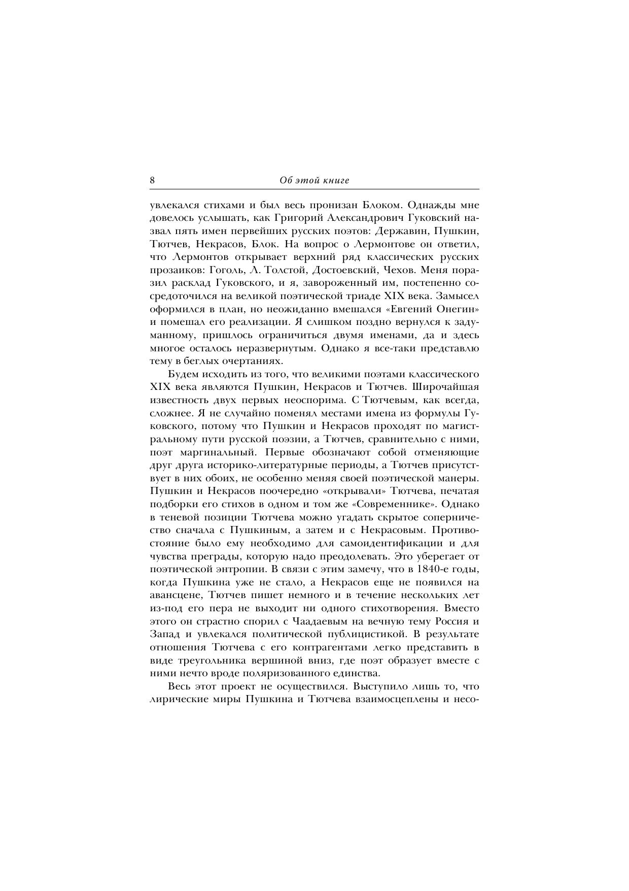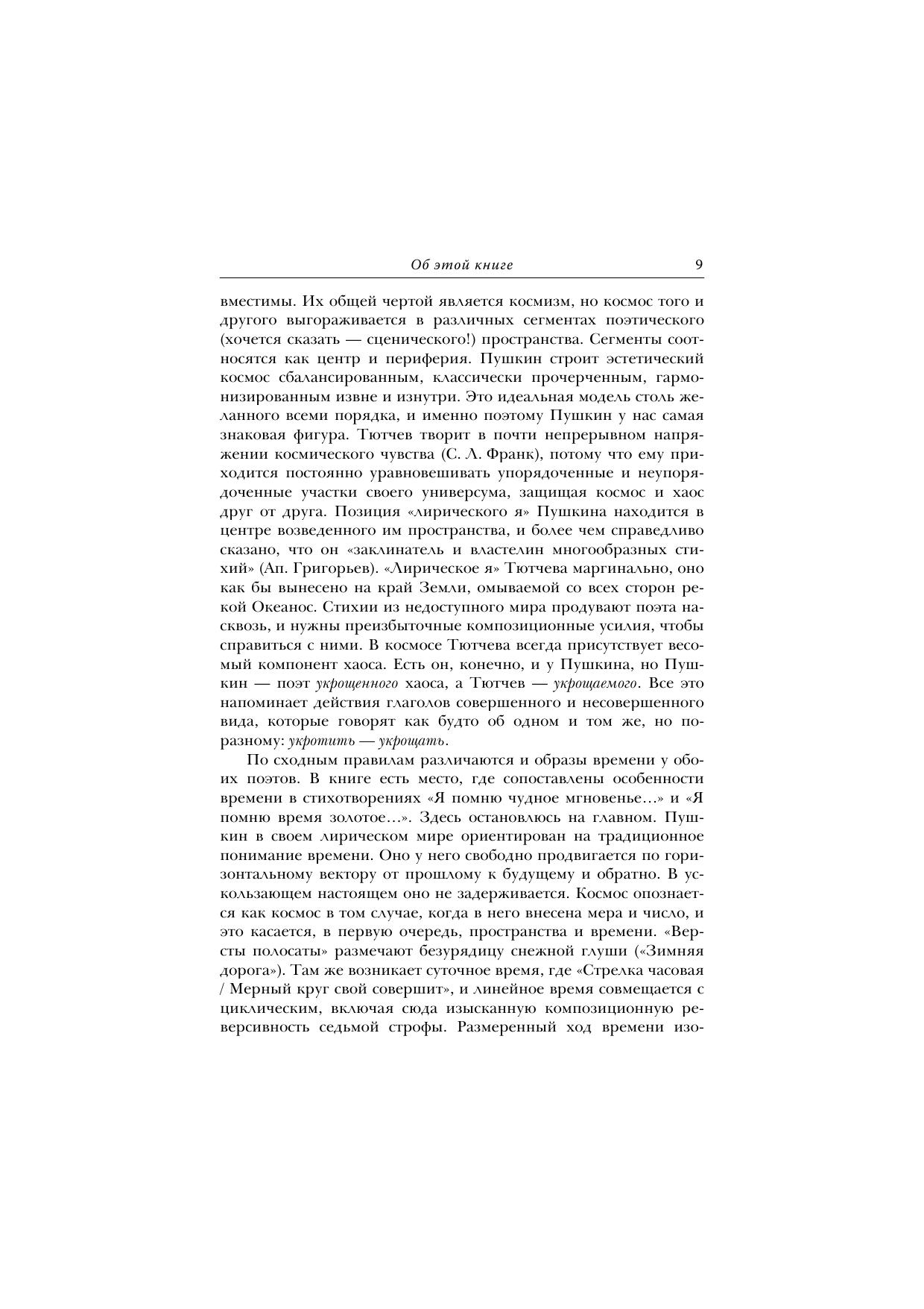В книге рассмотрен ряд текстов Пушкина и Тютчева, взятых вне сравнительно-сопоставительного анализа, с расчетом на их взаимоосвещение. Внимание обращено не только на поэтику, но и на сущностные категории, и в этом случае жанровая принадлежность оказывается приглушенной. Имманентный подход, объединяющий исследование, не мешает самодостаточному прочтению каждой из ее частей. Книга адресована специалистам в области теории и истории русской литературы, преподавателям и студентам-гуманитариям, а также всем, интересующимся классической русской поэзией.