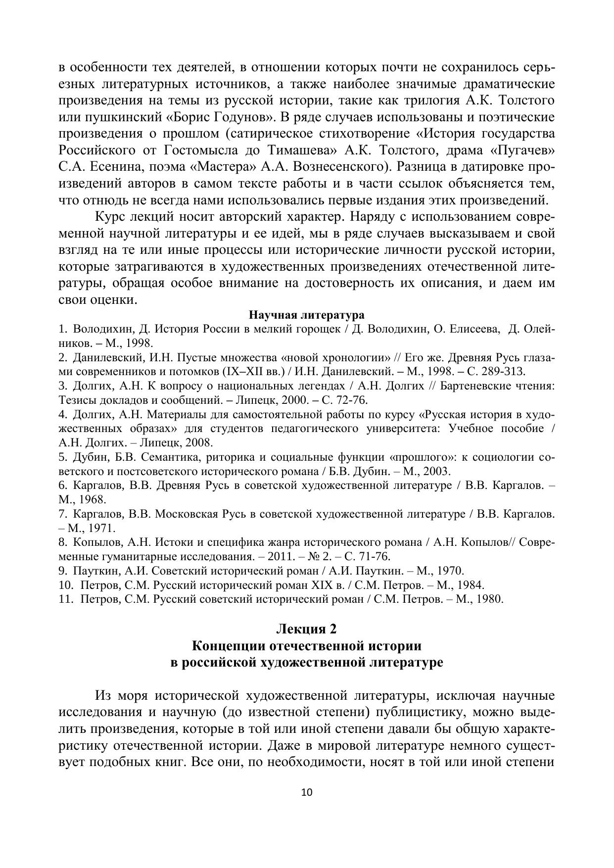 Данное учебное пособие включает в себя лекции в кратком изложении по курсу «Русская история в художественных образах». Оно представляет рассмотрение взглядов авторов ряда российских художественных произведений конца XVIII – начала XXI в. (преимущественно исторической романистики) на темы отечественной истории и их критическую оценку с точки зрения современной исторической науки и посвящено интерпретации отечественной истории в русской художественной литературе применительно к допетровскому времени. Для преподавателей и студентов высших учебных заведений, учителей, учащихся общеобразовательных школ и всех интересующихся русской историей.