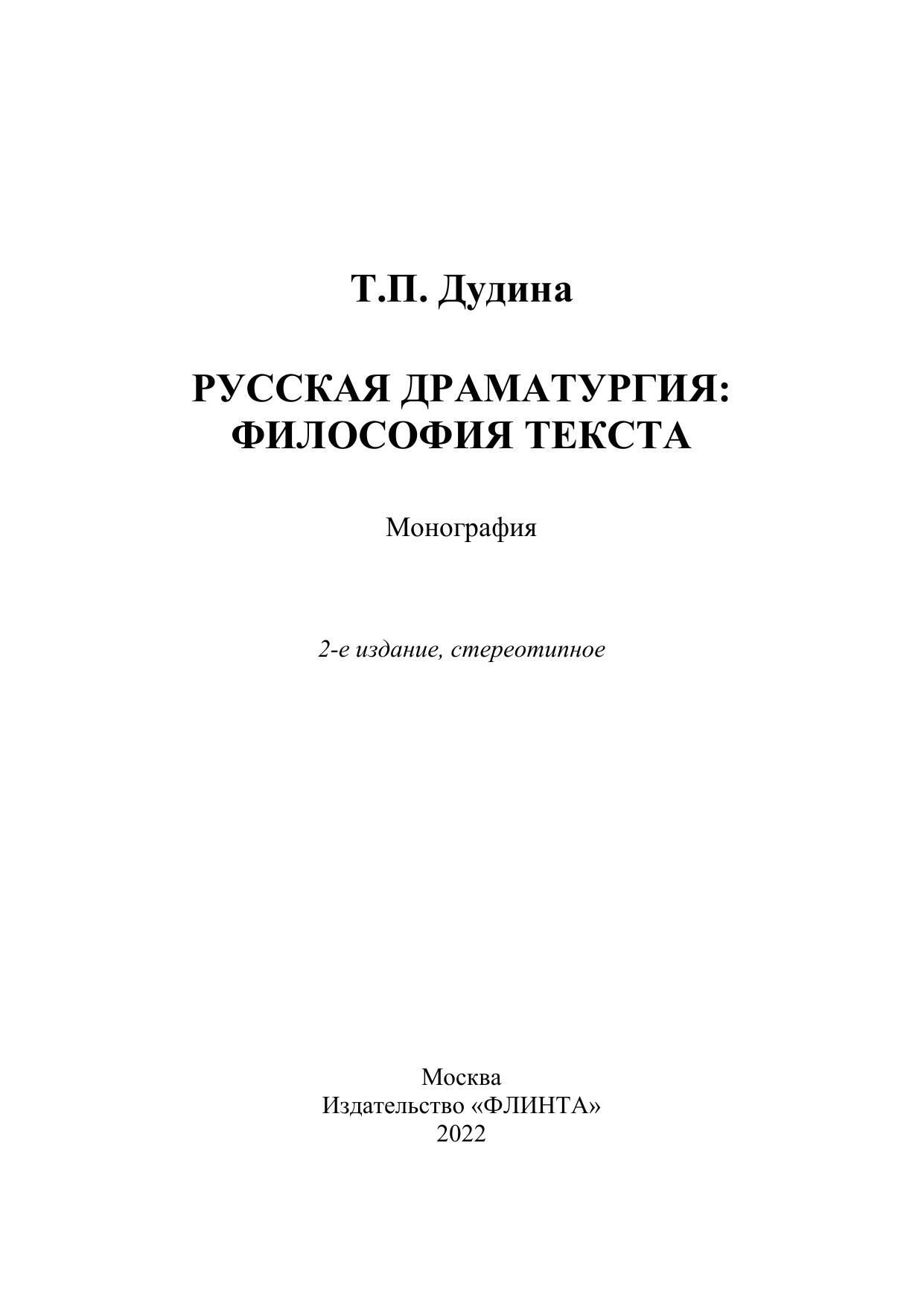 Русская драматургия: философия текста