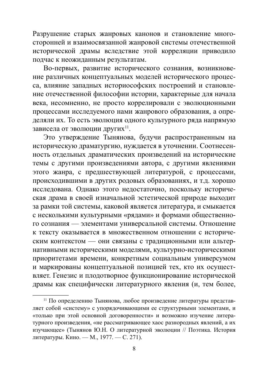 В монографии рассматривается русская историческая драматургия переходного периода — рубежа XVIII—XIX веков и первых десятилетий XIX века. Представленная как художественно-эстетический феномен, факт социальной активности, пространство актуальной историософской полемики и важная часть национальной культуры, она осмысливается под жанровым углом зрения. В работе анализируются парадоксы эстетических трансформаций и жанровых мутаций в исторической драме первых десятилетий XIX века как результат переходных процессов и исследуются некоторые особенности ее становления в контексте жанровых ожиданий и предпочтений. В двух главах предпринимается концептуальный анализ широкого теоретического и литературно-критического контекста начала XIX столетия, а также исследуются жанровый феномен исторических пьес В.А. Озерова, аксиология и жанровая поэтика исторической драматургии Г.Р. Державина и развитие этико-эстетической мысли в жанровой теории и драматургической практике писателей-декабристов. Предлагаемое исследование драматического контекста рубежной эпохи может представлять интерес для филологов-литературоведов.