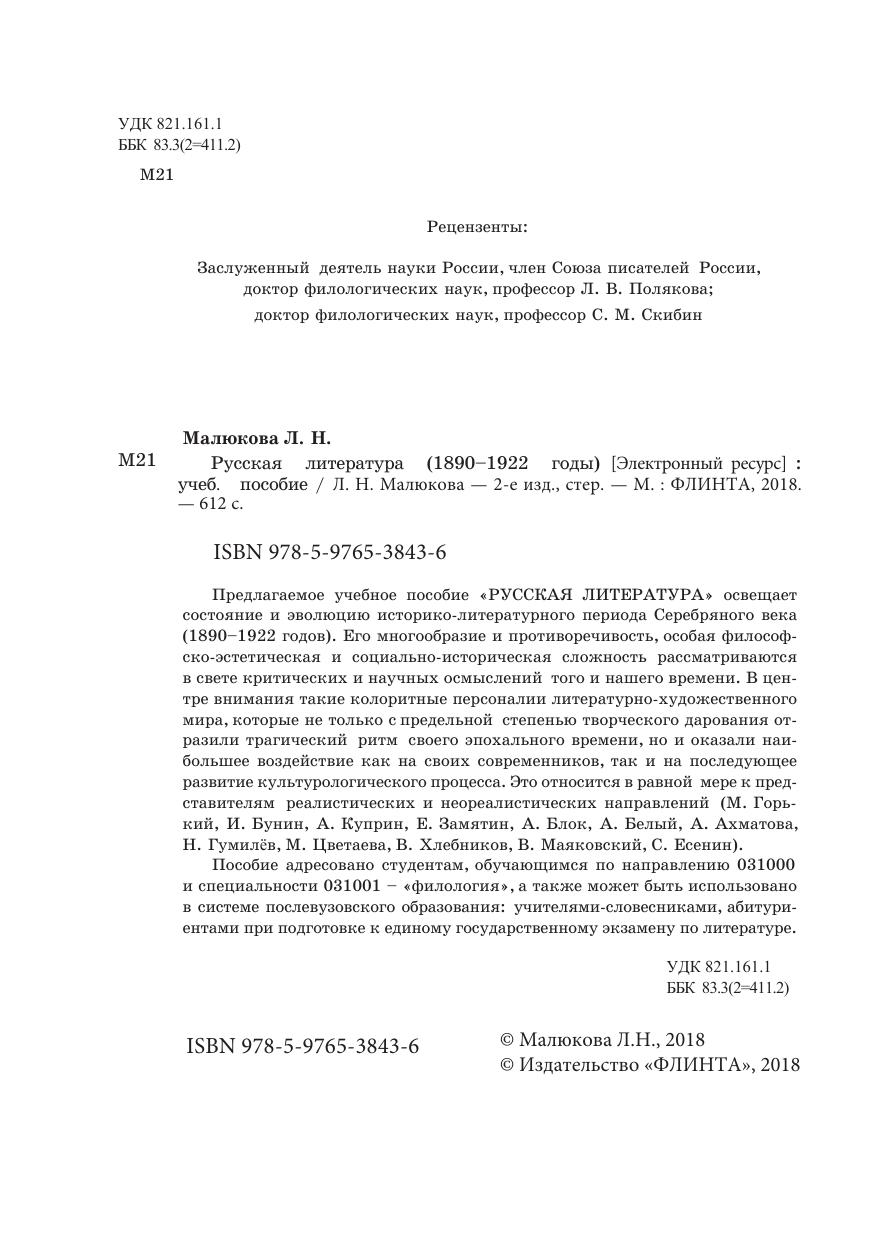 Предлагаемое учебное пособие «РУССКАЯ ЛИТЕРАТУРА» освещаетсостояние и эволюцию историко-литературного периода Серебряного века (1890–1922 годов). Его многообразие и противоречивость, особая философско-эстетическая и социально-историческая сложность рассматриваются в свете критических и научных осмыслений того и нашего времени. В центре внимания такие колоритные персоналии литературно-художественного мира, которые не только с предельной степенью творческого дарования отразили трагический ритм своего эпохального времени, но и оказали наибольшее воздействие как на своих современников, так и на последующее развитие культурологического процесса. Это относится в равной мере к представителям реалистических и неореалистических направлений (М. Горький, И. Бунин, А. Куприн, Е. Замятин, А. Блок, А. Белый, А. Ахматова,
