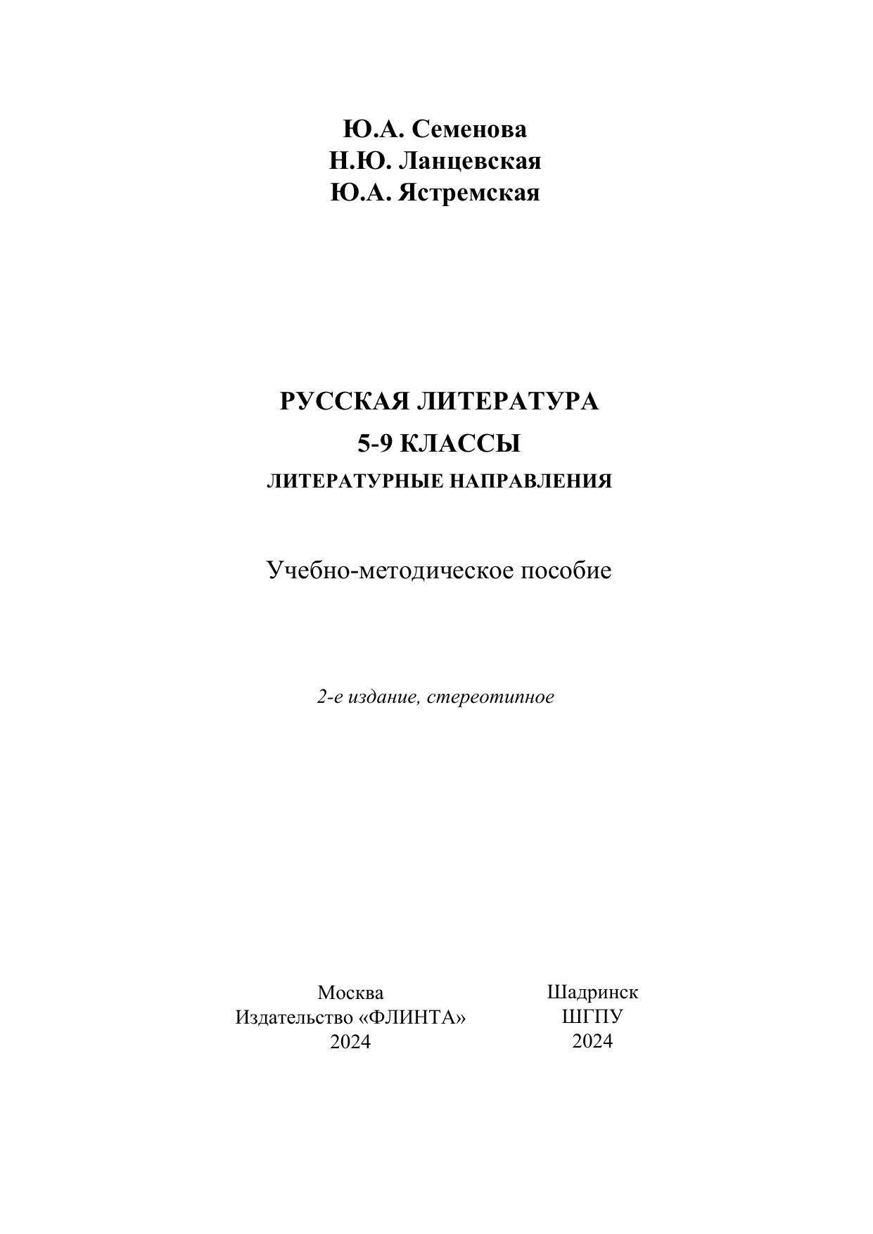 Русская литература 5-9 классы: литературный процесс