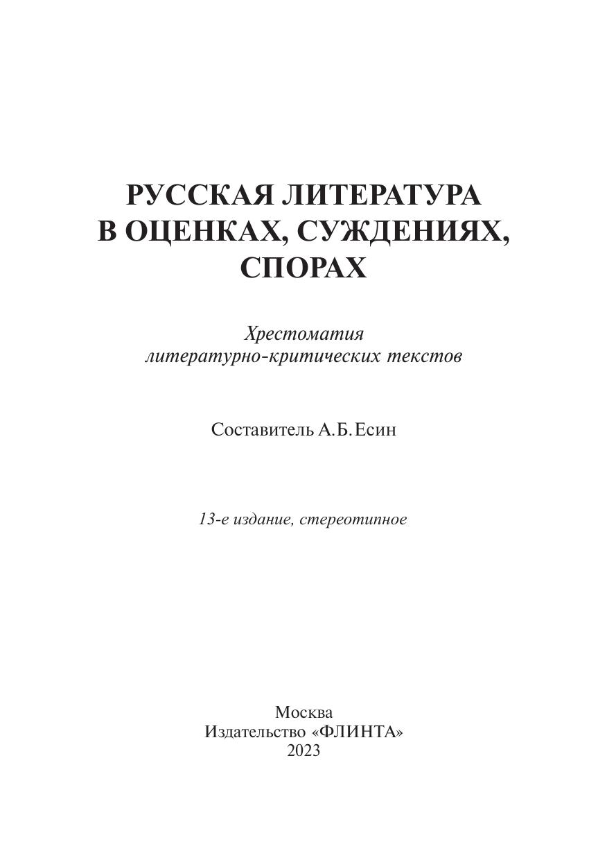 Русская литература в оценках, суждениях, спорах: хрестоматия литературно-критических текстов