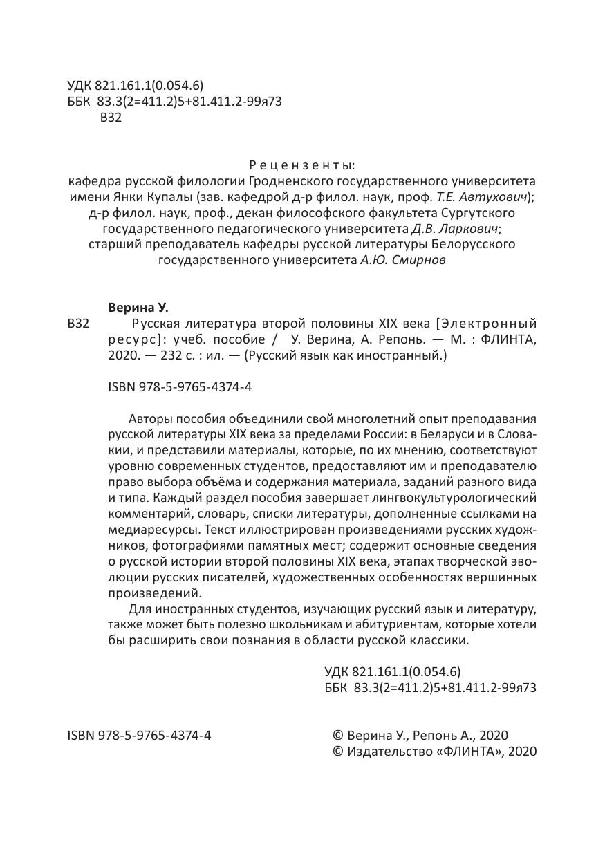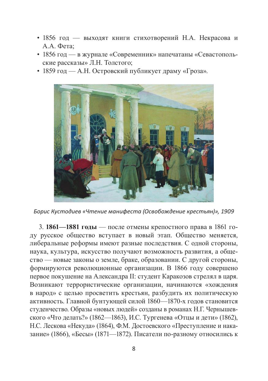 медиаресурсы. Текст иллюстрирован произведениями русских художников, фотографиями памятных мест; содержит основные сведения о русской истории второй половины ХІХ века, этапах творческой эволюции русских писателей, художественных особенностях вершинных произведений.