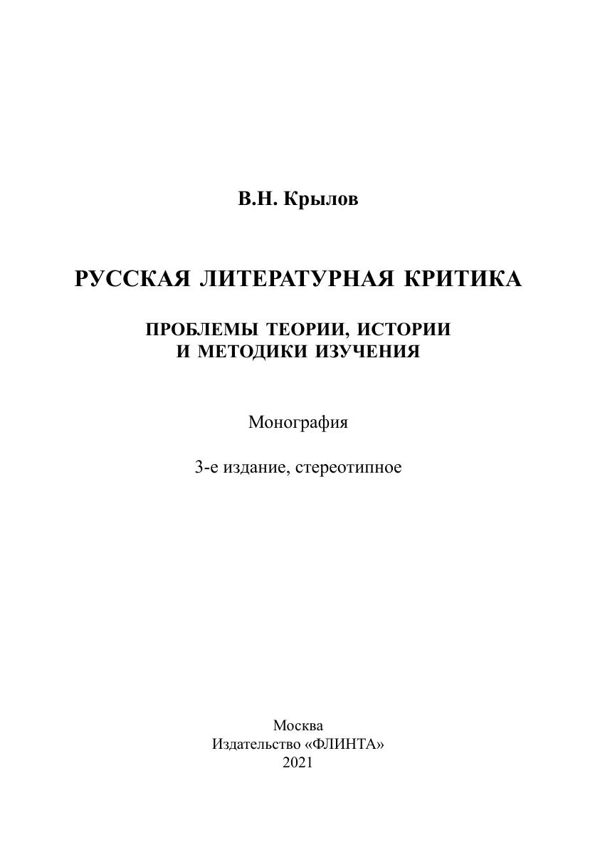 Русская литературная критика: проблемы теории, истории и методики изучения