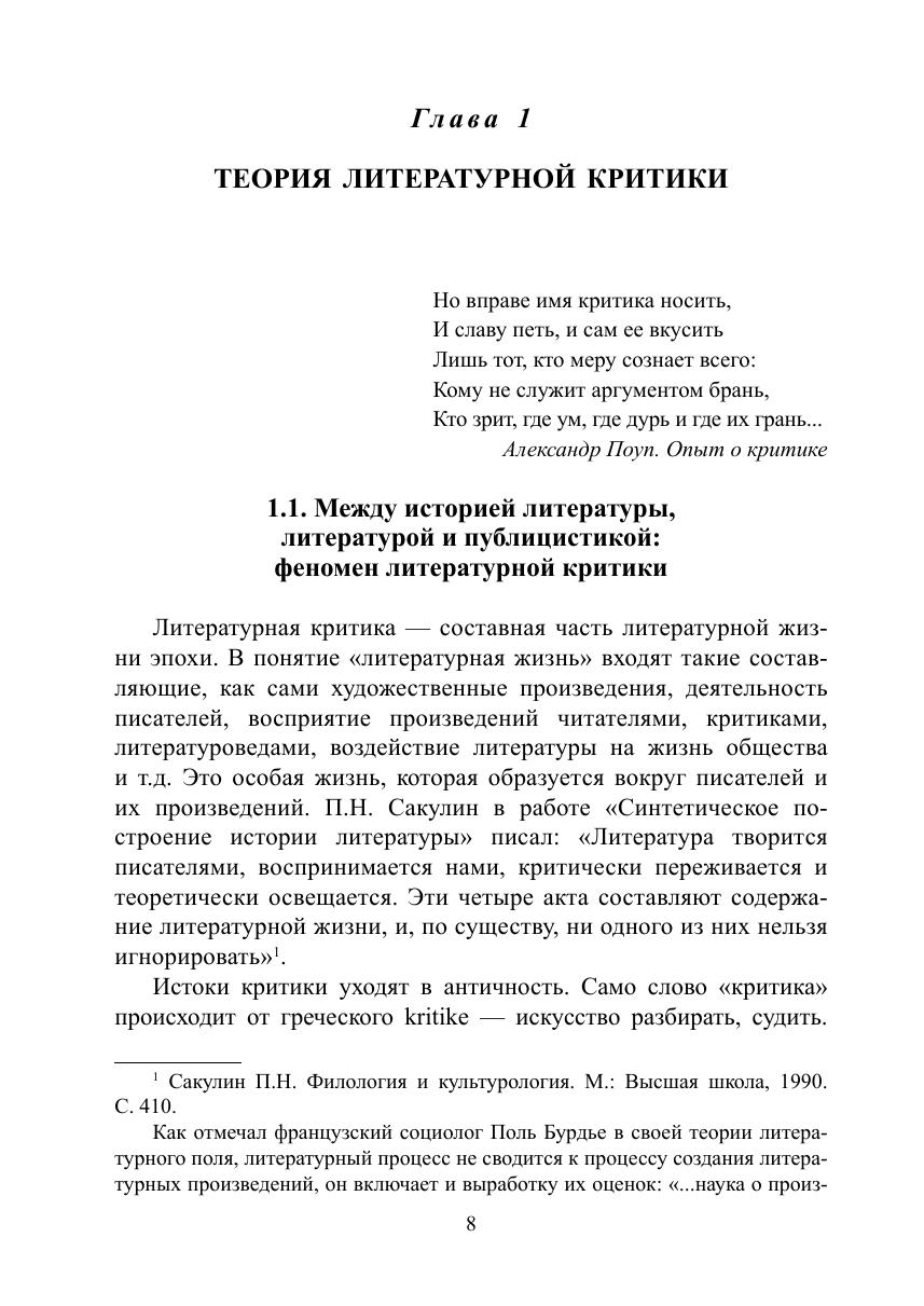 Монография предназначена для литературоведов, преподавателей, а также для всех интересующихся вопросами теории и истории литературной критики. Может быть использована в качестве учебного пособия для бакалавров, магистрантов, аспирантов филологического и журналистского профиля