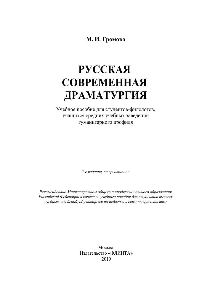 Русская современная драматургия: учеб. пособие для студентов-филологов, учащихся средних учебных заведений гуманитарного профиля