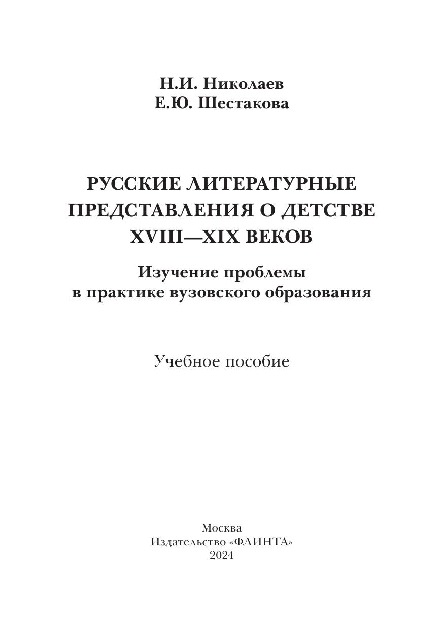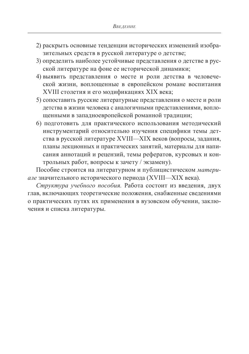 Учебное пособие направлено на раскрытие вопроса о национальных особенностях русской литературы XVIII—XIX веков, обращенной к теме детства, роли и месте детства в системе представлений о человеческой жизни, основных изменениях художественно-изобразительных средств в русской литературе о детстве, своеобразии русских литературных представлений о детстве на фоне западноевропейской романной традиции. В работе предложен материал для реализации темы в практике вузовского обучения (вопросы, задания, планы лекционных и практических занятий, рекомендуемые списки источников для написания аннотаций, рецензий, темы рефератов, курсовых, контрольных работ, вопросы к зачету / экзамену).
