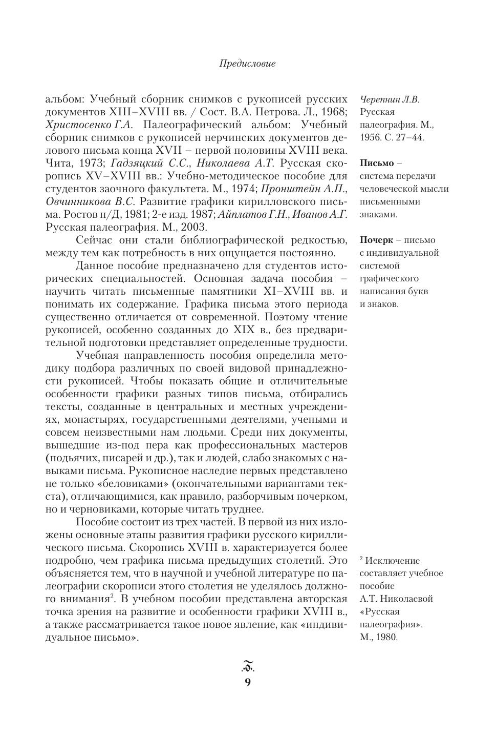 В учебном пособии рассматриваются история развития кириллической азбуки, типы письма и особенности эволюции графики разных столетий. Приводятся тексты рукописей (с транскрипциями и без транскрипций), работа над которыми позволит студентам овладеть навыками чтения письменных памятников XI–XVIII вв.