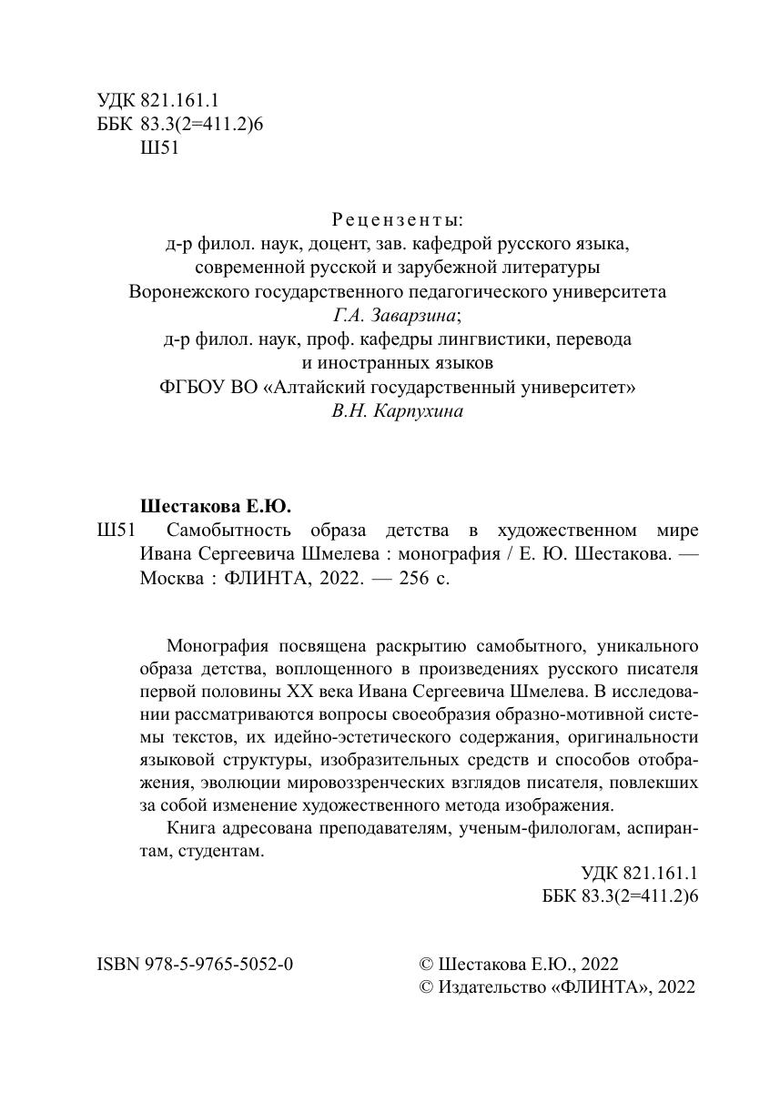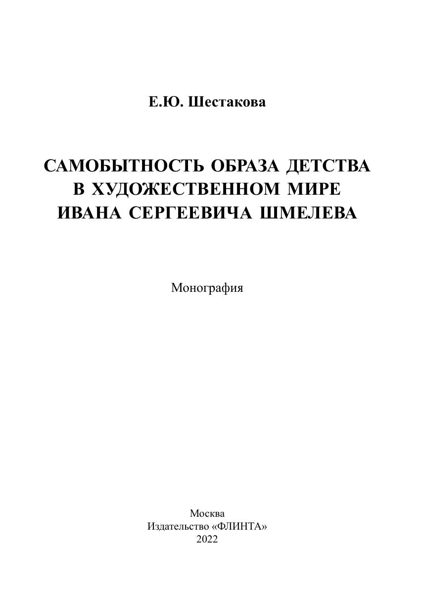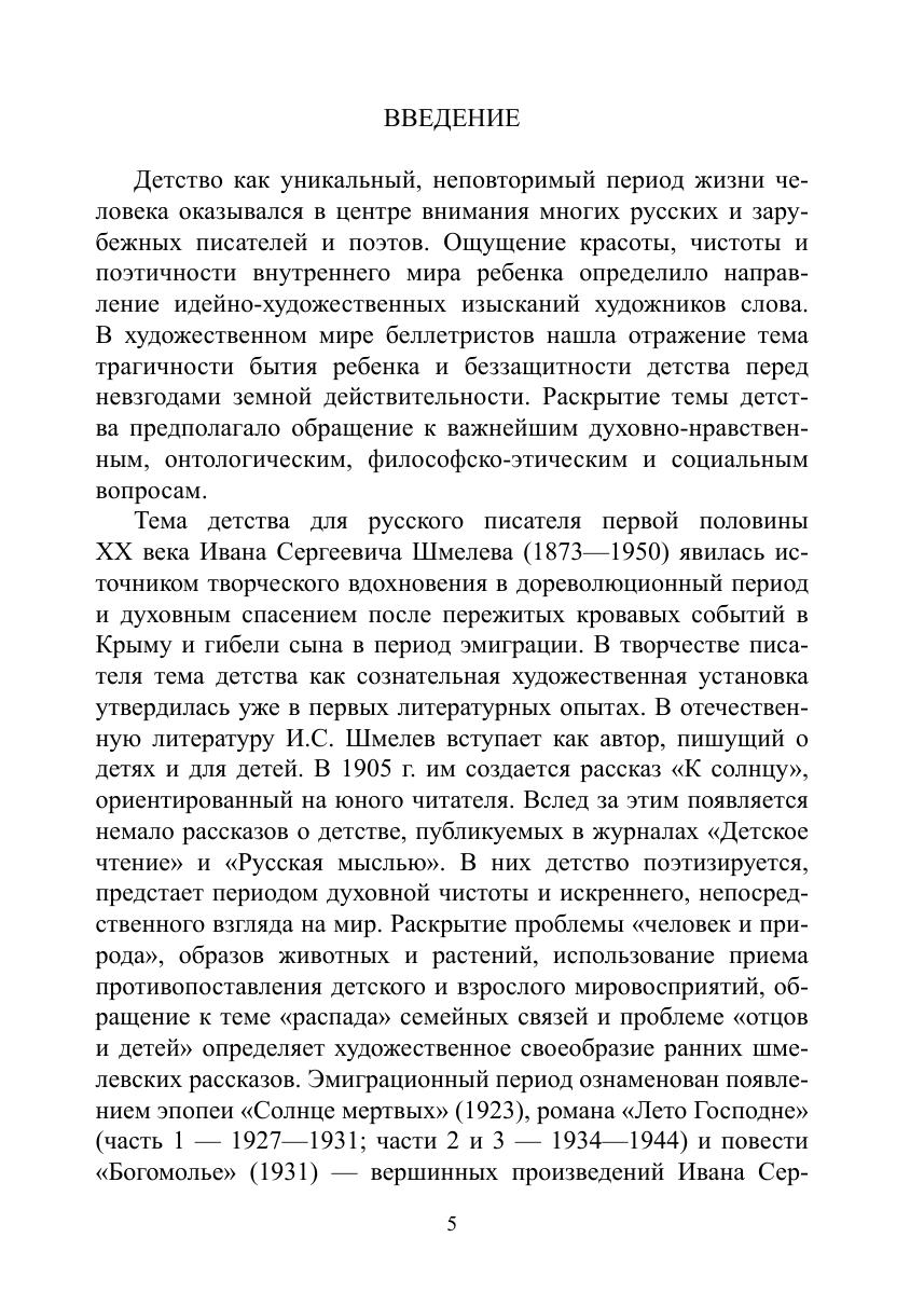 Монография посвящена раскрытию самобытного, уникального образа детства, воплощенного в произведениях русского писателя первой половины XX века Ивана Сергеевича Шмелева. В исследовании рассматриваются вопросы своеобразия образно-мотивной системы текстов, их идейно-эстетического содержания, оригинальности языковой структуры, изобразительных средств и способов отображения, эволюции мировоззренческих взглядов писателя, повлекших за собой изменение художественного метода изображения.