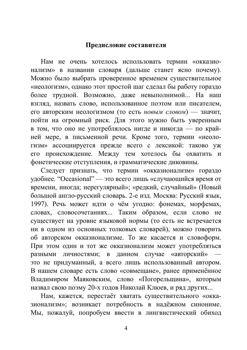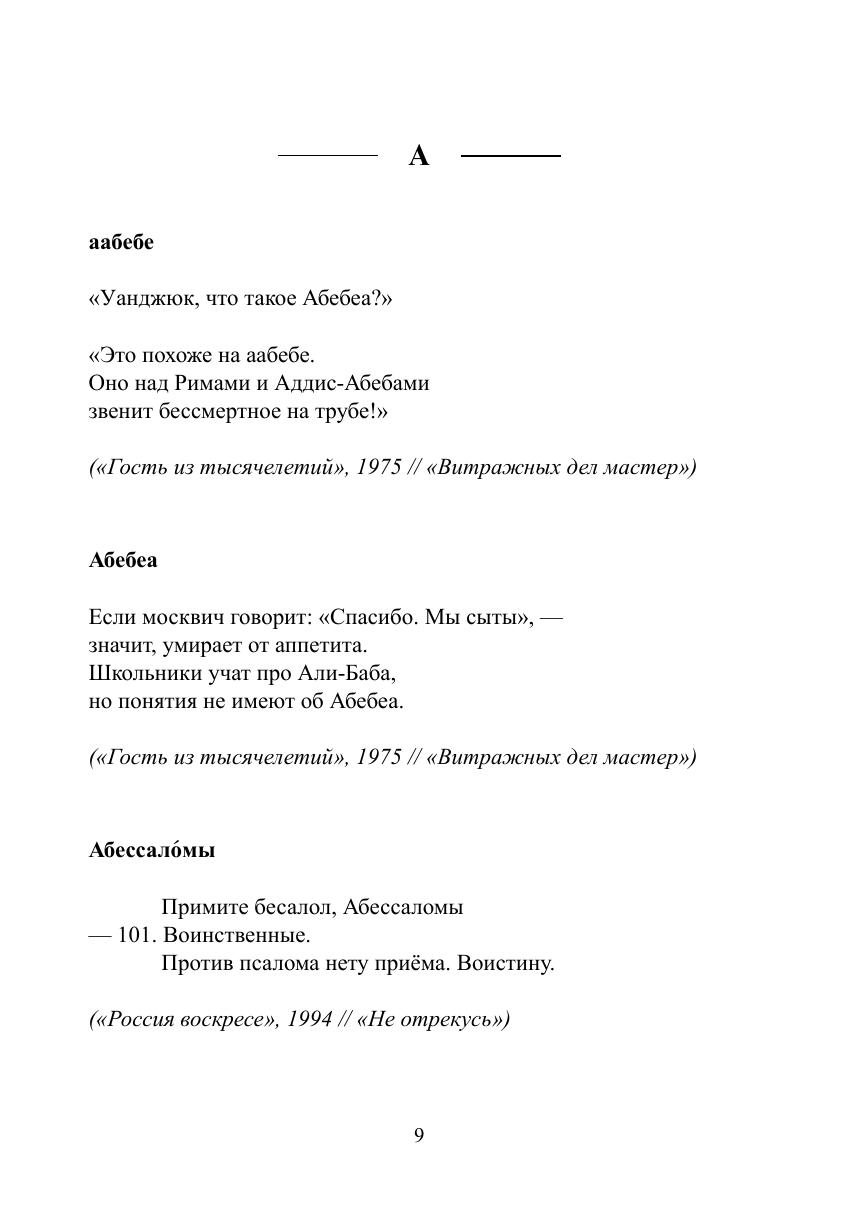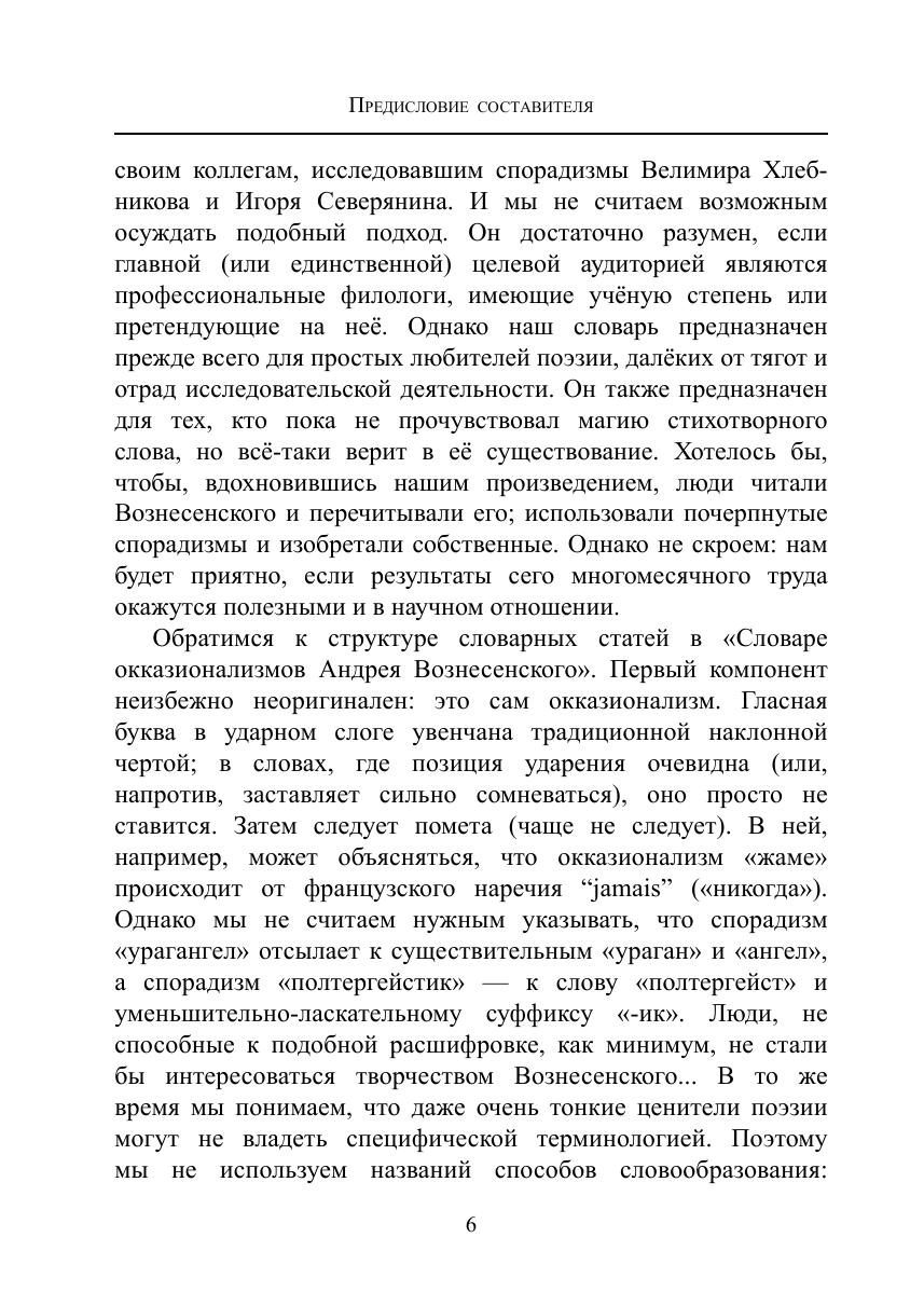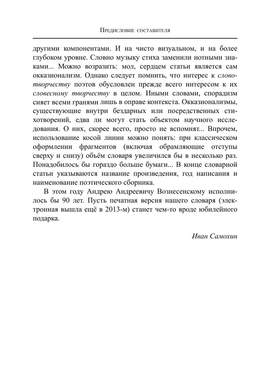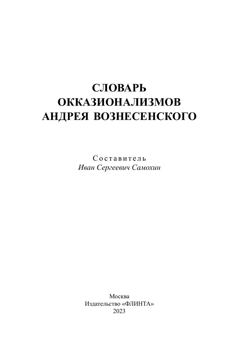В словаре приведено более 2000 окказионализмов, обнаруженных в произведениях Андрея Андреевича Вознесенского (1933—2010). Издание посвящается памяти выдающегося русского поэта, создателя поэм «Мастера», «Лонжюмо», «Оза», «Авось!», множества глубоких и самобытных стихотворений.