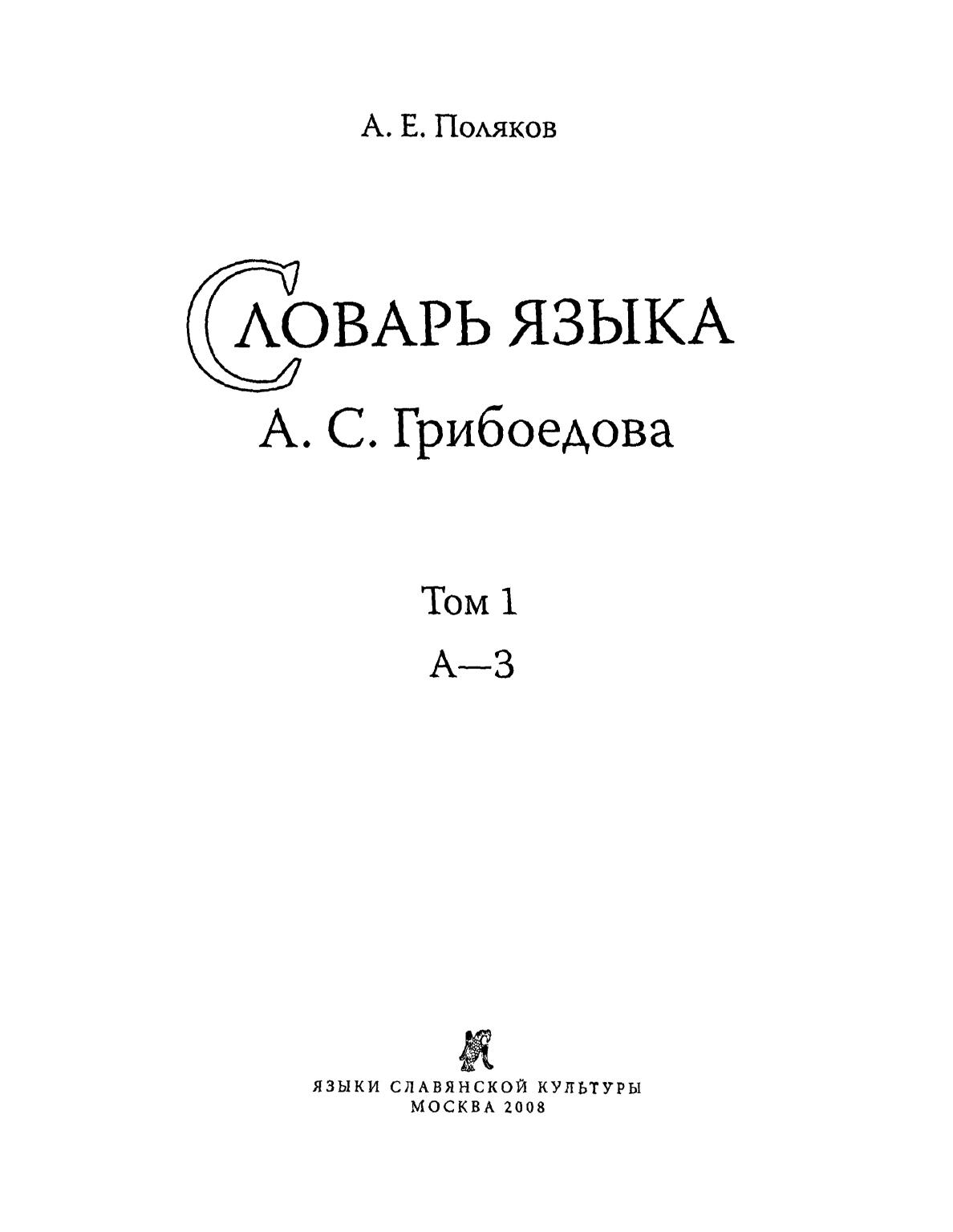 Словарь языка А. С. Грибоедова. Т. 1: А—З