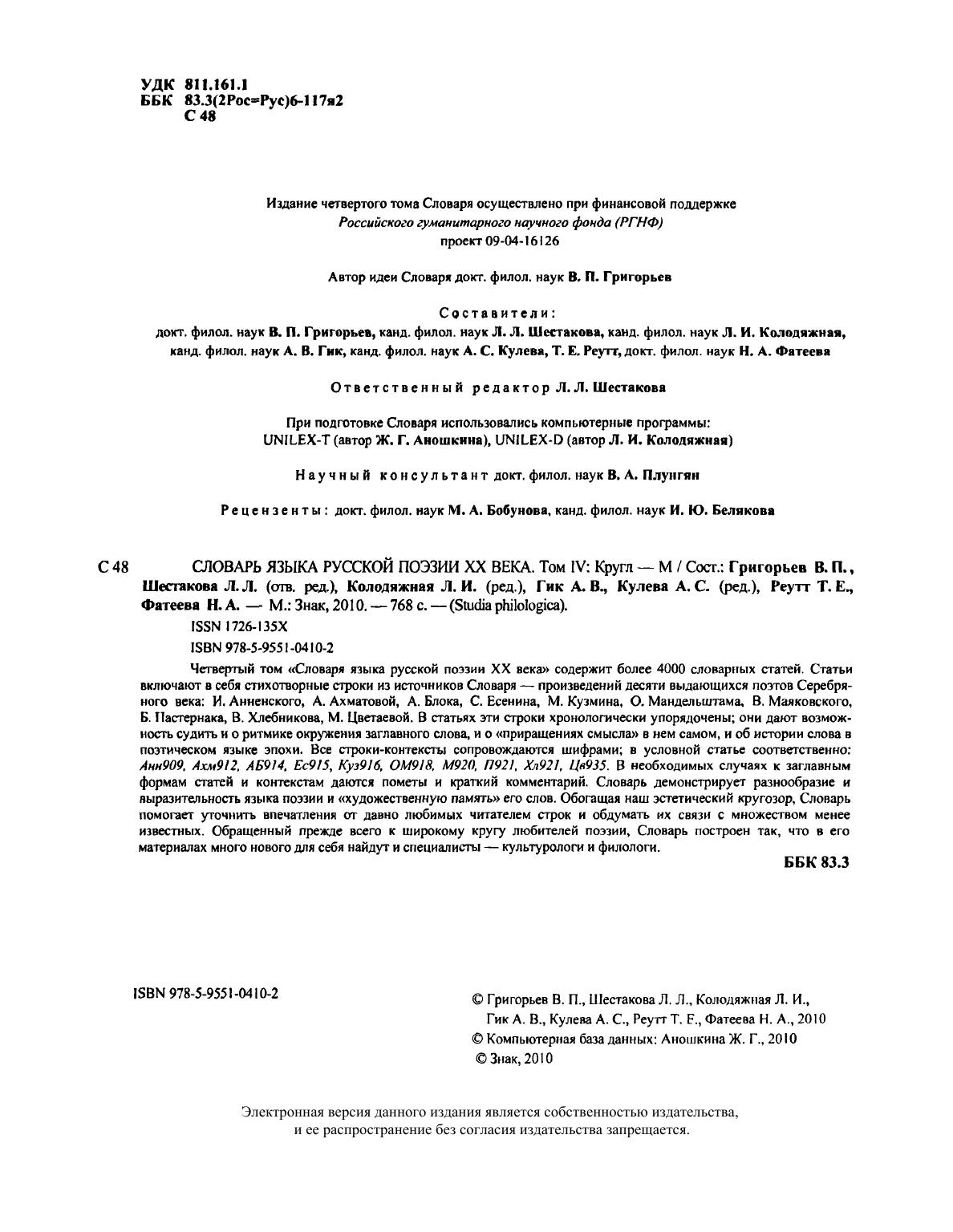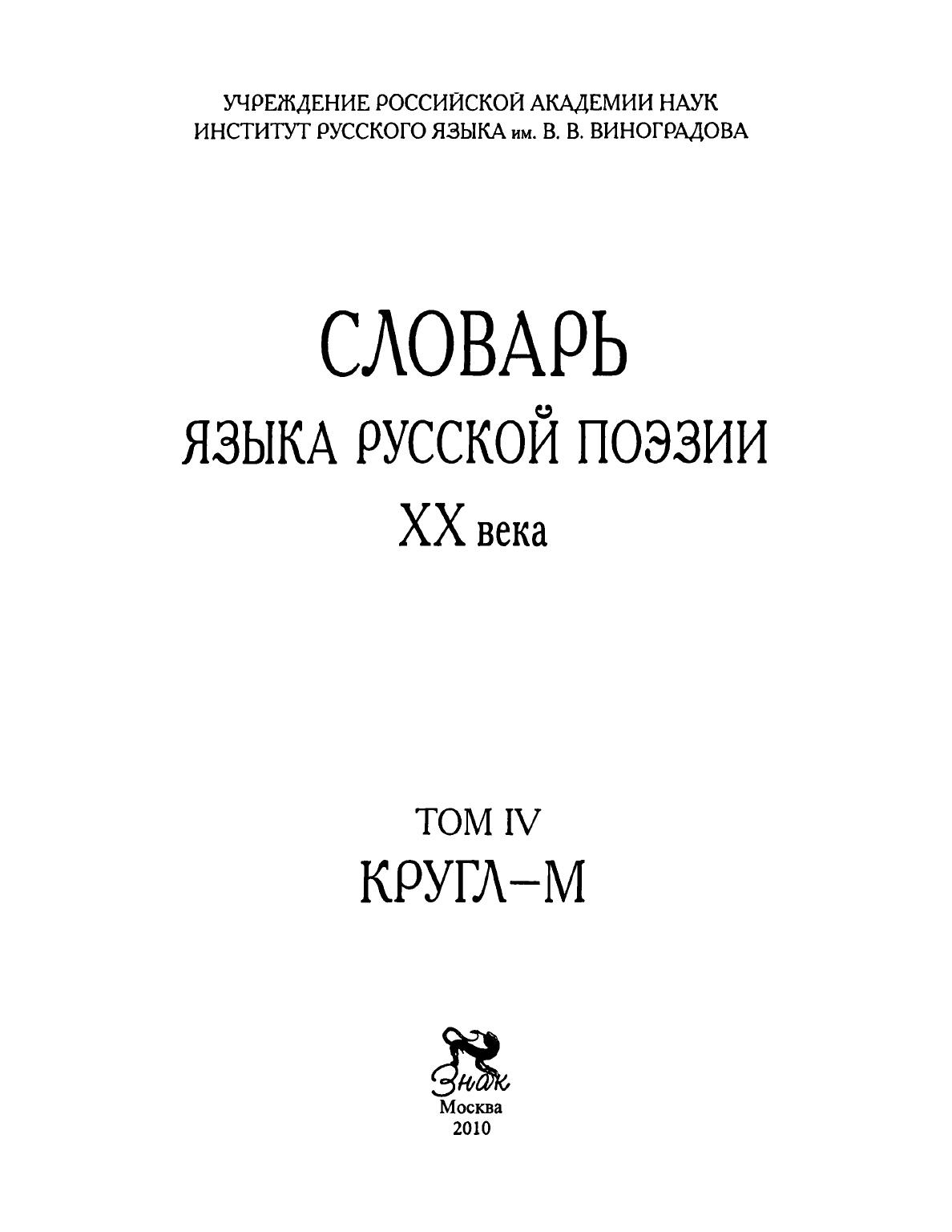 Словарь языка русской поэзии ХХ века. Т. IV: Кругл — М