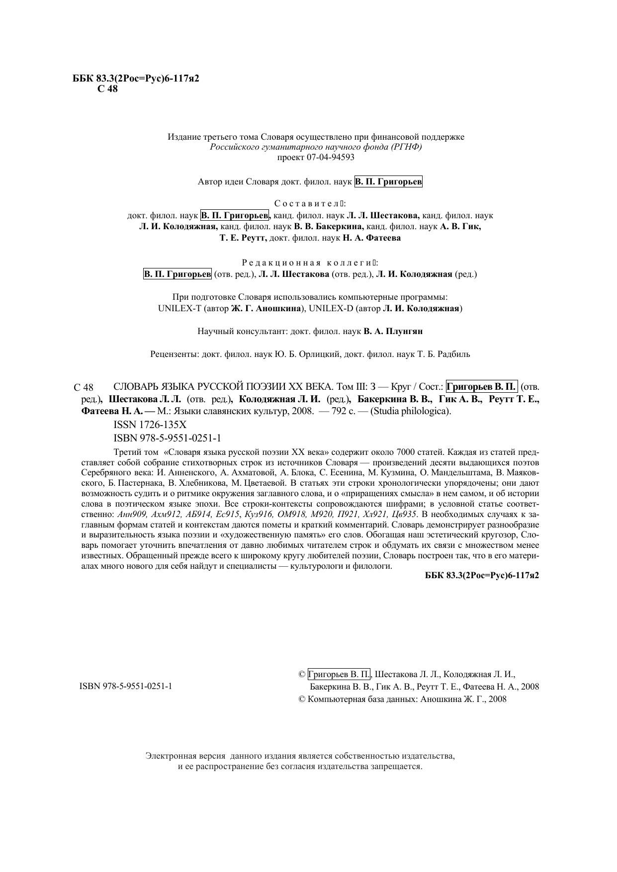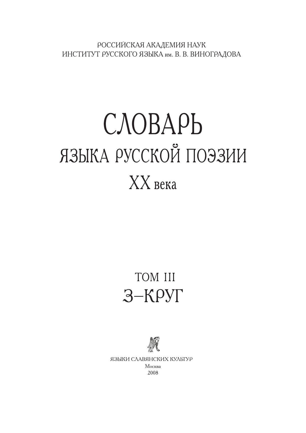 Словарь языка русской поэзии ХХ века. Т. III: З – КРУГ