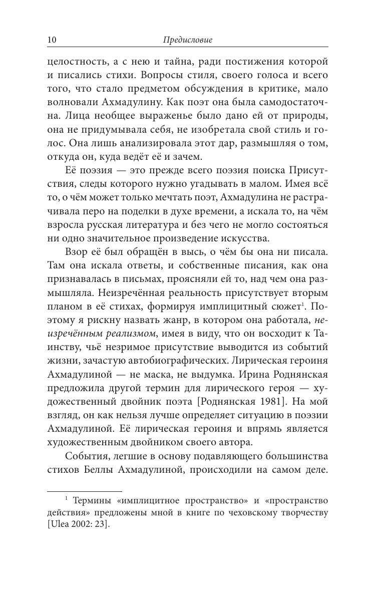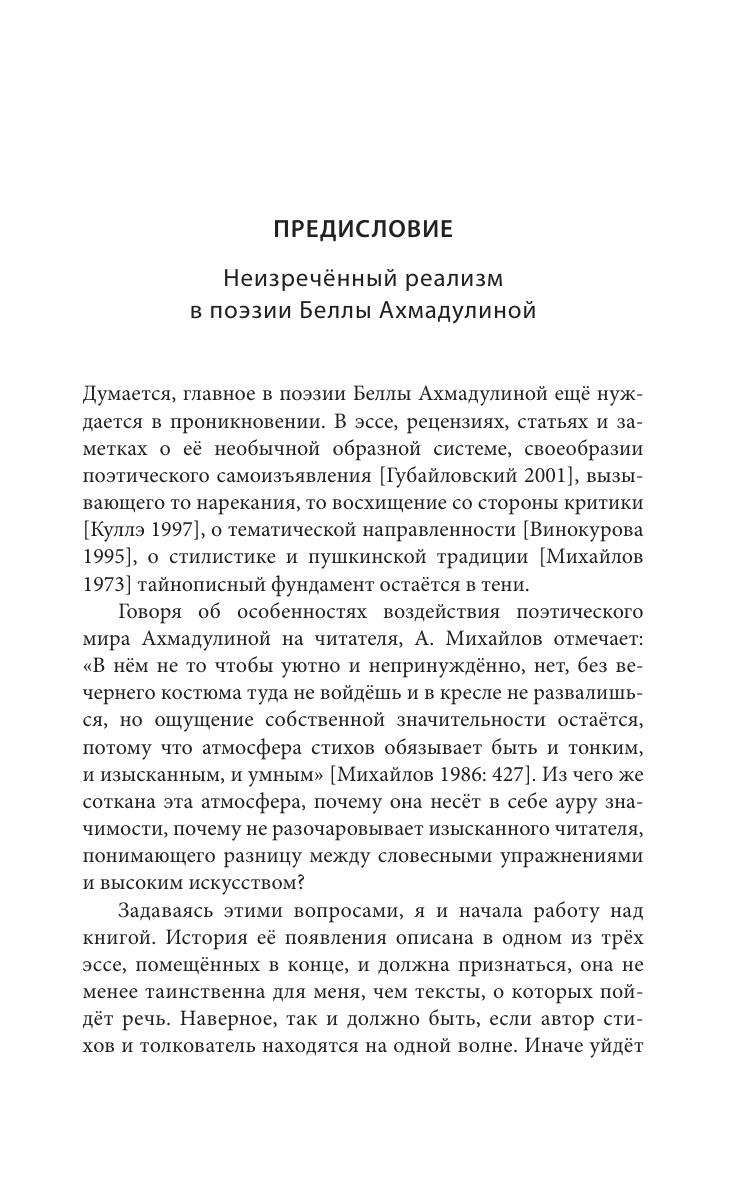 Исследование посвящено поэзии поиска Присутствия в стихах Беллы Ахмадулиной 1980-х – 2000-х гг. Обращаясь к неизречённой реальности и сделав её имплицитным сюжетом своих произведений, Ахмадулина разработала жанр, который можно назвать неизречённым реализмом. В поэзии Ахмадулиной неизречённый реализм вырастает из фактов её биографии, реальных дат и событий, вглядываясь в которые, она пытается обнаружить связь с Присутствием. Метод, которым она пользуется, – метод тайнописи – позволяет ей создавать многоуровневую систему, в которой таинство угадывается в обыденном и реалистичном. Этот метод поэтесса некогда сформулировала так: «Чужда я притязаний и повадок – / коснуться высших таинств напрямик».