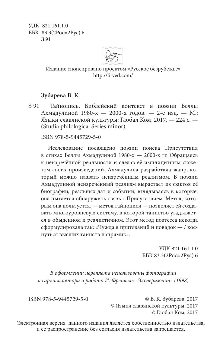 Тайнопись. Библейский контекст в поэзии Беллы Ахмадулиной 1980-2000-х годов