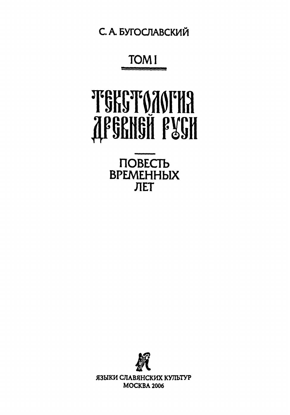 Текстология Древней Руси. Т. 1: Повесть временных лет