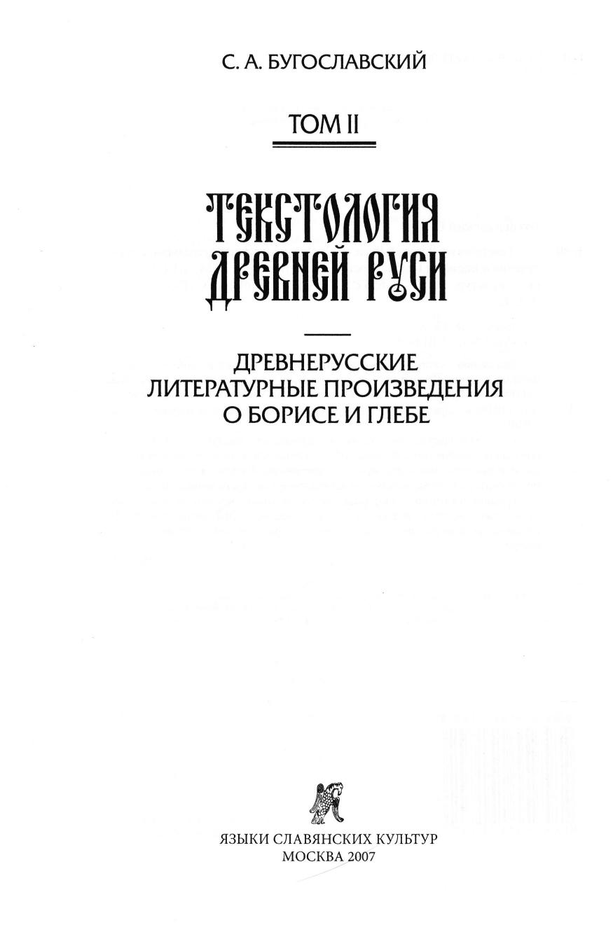 Текстология Древней Руси. Т. II. Древнерусские литературные произведения о Борисе и Глебе