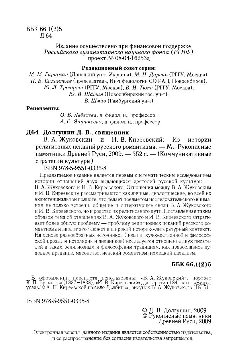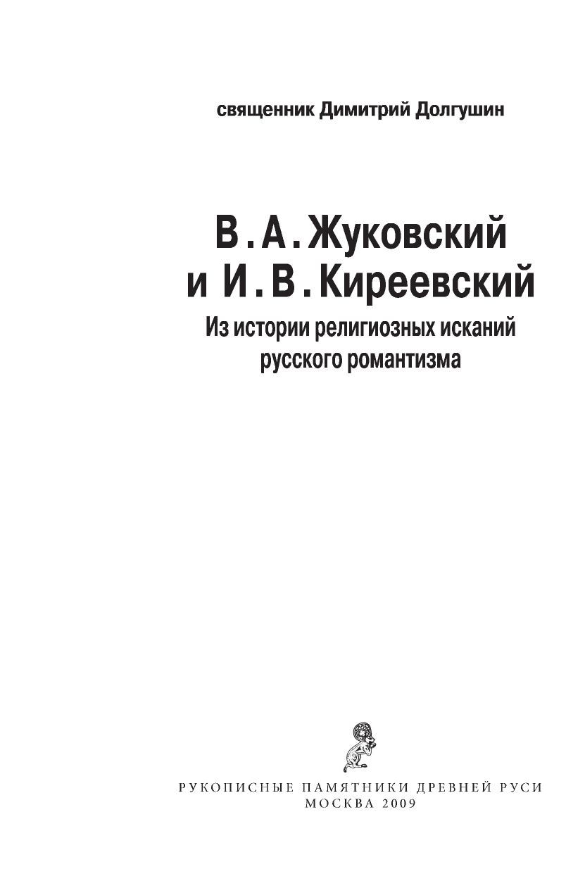 Предлагаемое издание является первым систематическим исследованием истории отношений двух выдающихся деятелей русской культуры - В.А.Жуковского и И.В.Киреевского. Отношения между В.А.Жуковским и И.В.Киреевским рассматриваются как личные, диалогические, во всей их экзистенциальной полноте, что делает предметом исследовательского внимания не только встречи, общение и литературные связи В.А.Жуковского и И.В.Киреевского, но и родство их религиозного пути. Поставленная таким образом тема об отношениях В.А.Жуковского и И.В.Киреевского затрагивает более общую проблему - проблему религиозных исканий русского романтизма и вводит этот сюжет в широкий историко-литературный контекст. На основе разнообразных источников (поэзии, художественной и философской прозы, эпистолярия и дневников) исследуется отношение двух писателей к таким религиозным и философским традициям, как православное духовное предание, масонство, иенский романтизм, немецкий идеализм. Книга предназначена для историков, философов, религиоведов и всех интересующихся литературоведением и историей культуры.