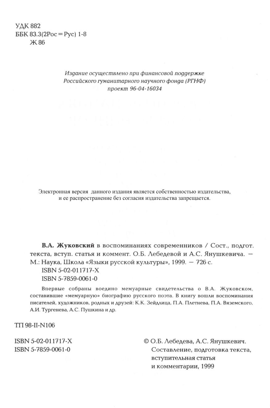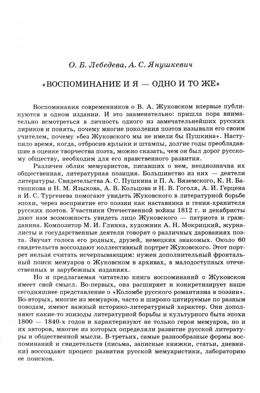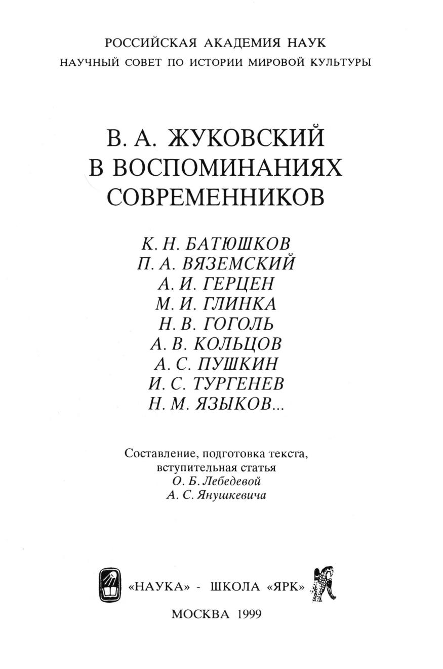 Впервые собраны воедино мемуарные свидетельства о В.А.Жуковском, составившие «мемуарную» биографию русского поэта. В книгу вошли воспоминания писателей, художников, родных и друзей: К.К.Зейдлица, П.А.Плетнева, П.А.Вяземского, А.И.Тургенева, А.С.Пушкина и др.