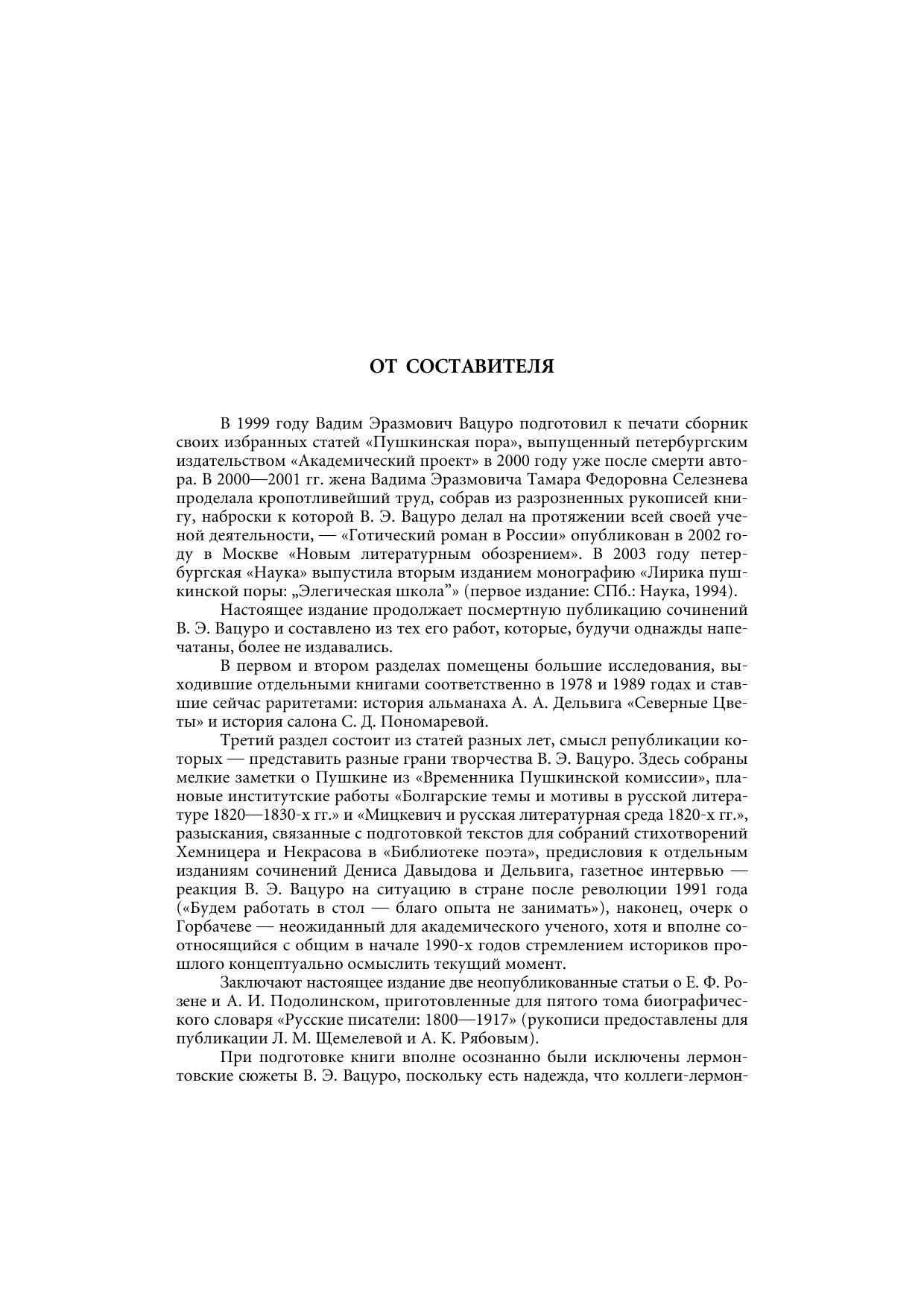 Вадим Эразмович Вацуро (1935–2000) – выдающийся историк русской литературы. В настоящее издание включены две большие работы В.Э.Вацуро – «Северные Цветы (История альманаха Дельвига – Пушкина)» и «С.Д.П.: Из истории литературного быта пушкинской поры» (история салона С.Д.Пономаревой), выходившие отдельными книгами соответственно в 1978-м и 1989 годах и с тех пор ни разу не переиздававшиеся, и статьи разных лет, также не периздававшиеся с момента первых публикаций. Вошли работы, представляющие разные грани творчества В.Э.Вацуро: наряду с историко-литературными статьями о Пушкине, Давыдове, Дельвиге, Рылееве, Мицкевиче, Некрасове включены заметки на современные темы, в частности, очерк «М.Горбачев как феномен культуры». B.Э.Вацуро не только знал историю русской литературы почти как современник тех писателей, которых изучал, но и умел рассказать об этой истории нашим современникам так, чтобы всякий мог прочитать его труды почти как живой документ давно прошедшей эпохи.