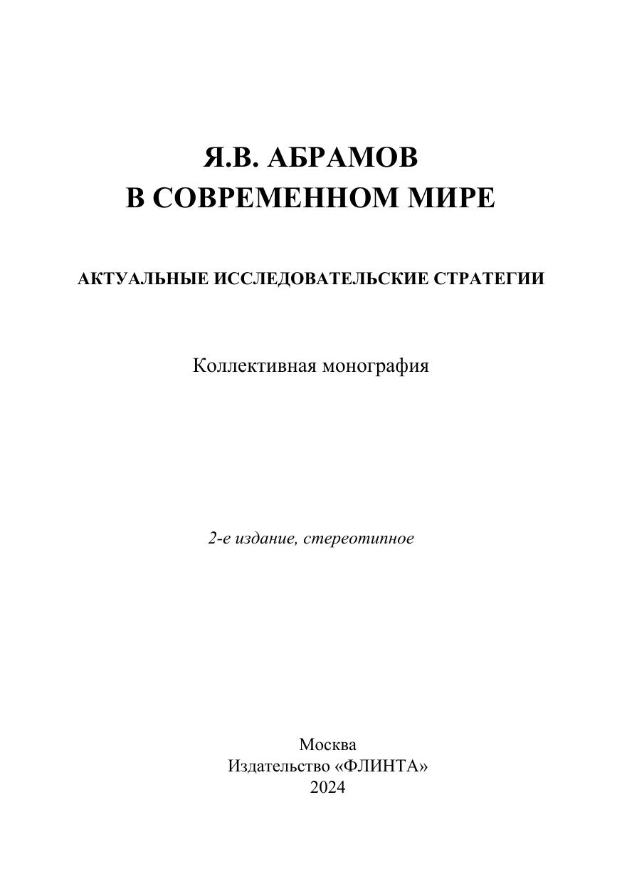 Я.В. Абрамов в современном мире: актуальные исследовательские стратегии