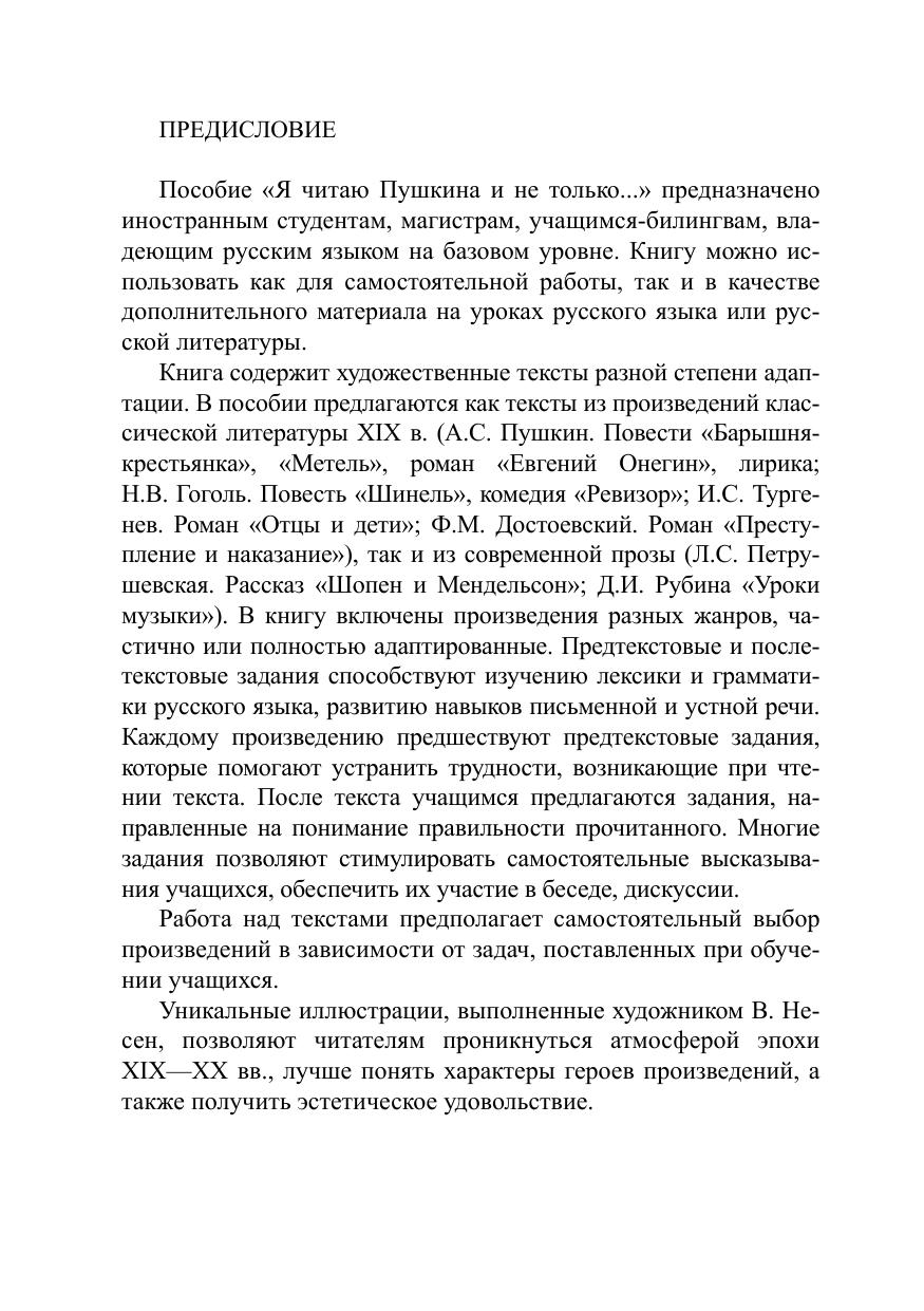 Учебное пособие включает произведения русских писателей разной степени адаптации. Серия лексико-грамматических упражнений способствует совершенствованию языковой компетенции, использование различных заданий направлено на развитие речевых навыков.