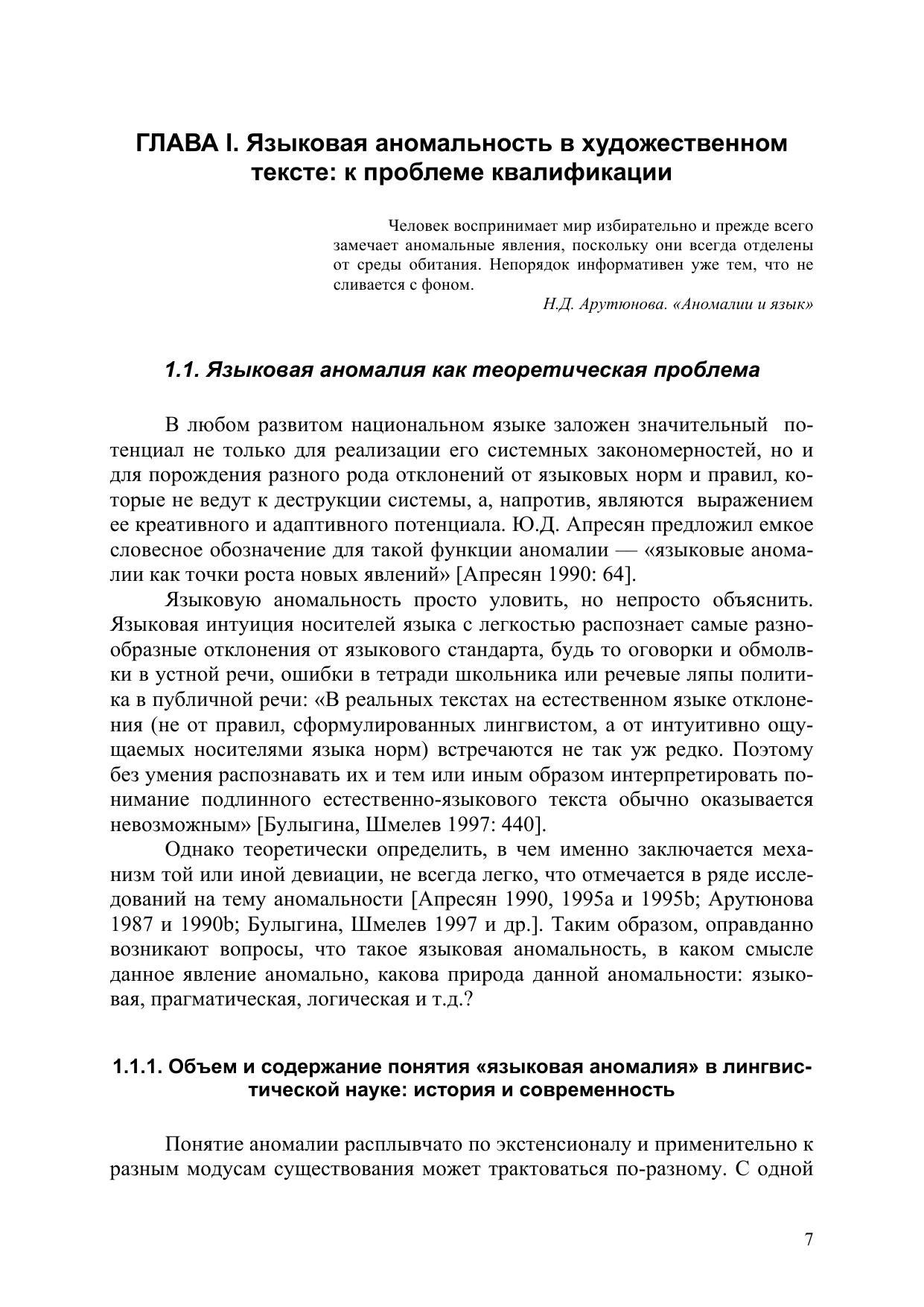 тексте и обосновывается релевантная типология языковых аномалий применительно