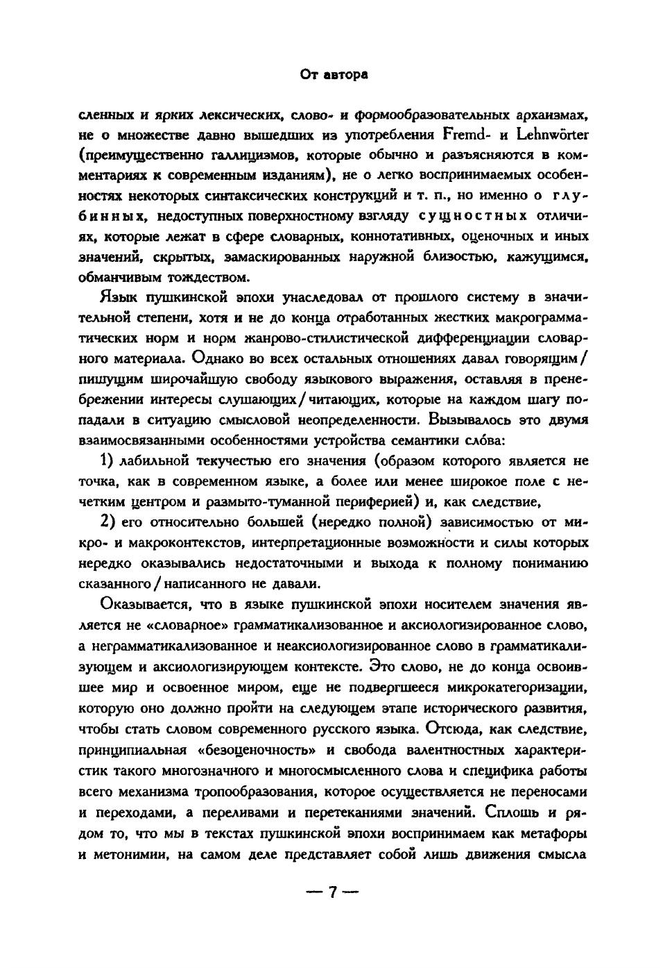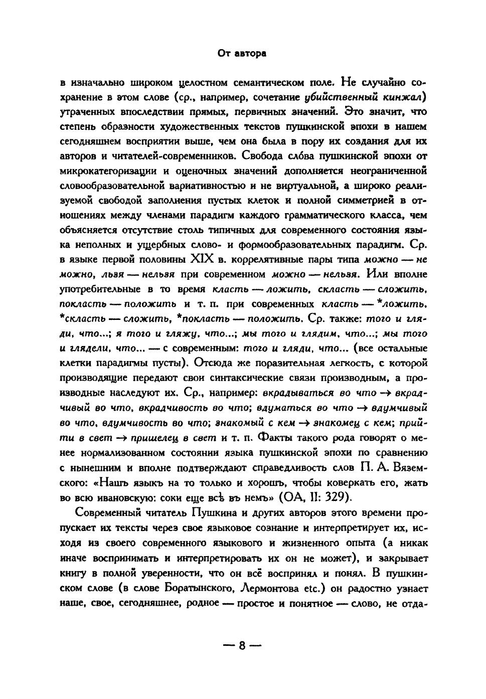 Очерки, собранные в книге, посвящены "темным местам" "Евгения Онегина", "Полтавы", "Путешествия в Арзрум" и "Гробовщика". Последовательный филологический подход к слову Пушкина и его современников обнаруживает ускользающие значения и смыслы, за которыми скрываются неизвестные стороны тогдашней русской жизни. В задачи автора входит непротиворечивое понимание ряда словесных мотивов и сюжетных деталей, взятых не изолированно, а в контексте художественного целого. Анализ подкрепляется обширными языковыми данными XVIII-XX вв., отражающими глубокие, но малозаметные сдвиги в языковой системе. Книга может быть интересна пушкинистам, историкам русской литературы и русского языка, а также всем, кто хочет глубже понять Пушкина и культуру эпохи.