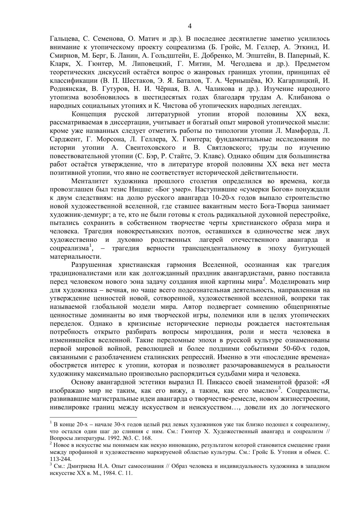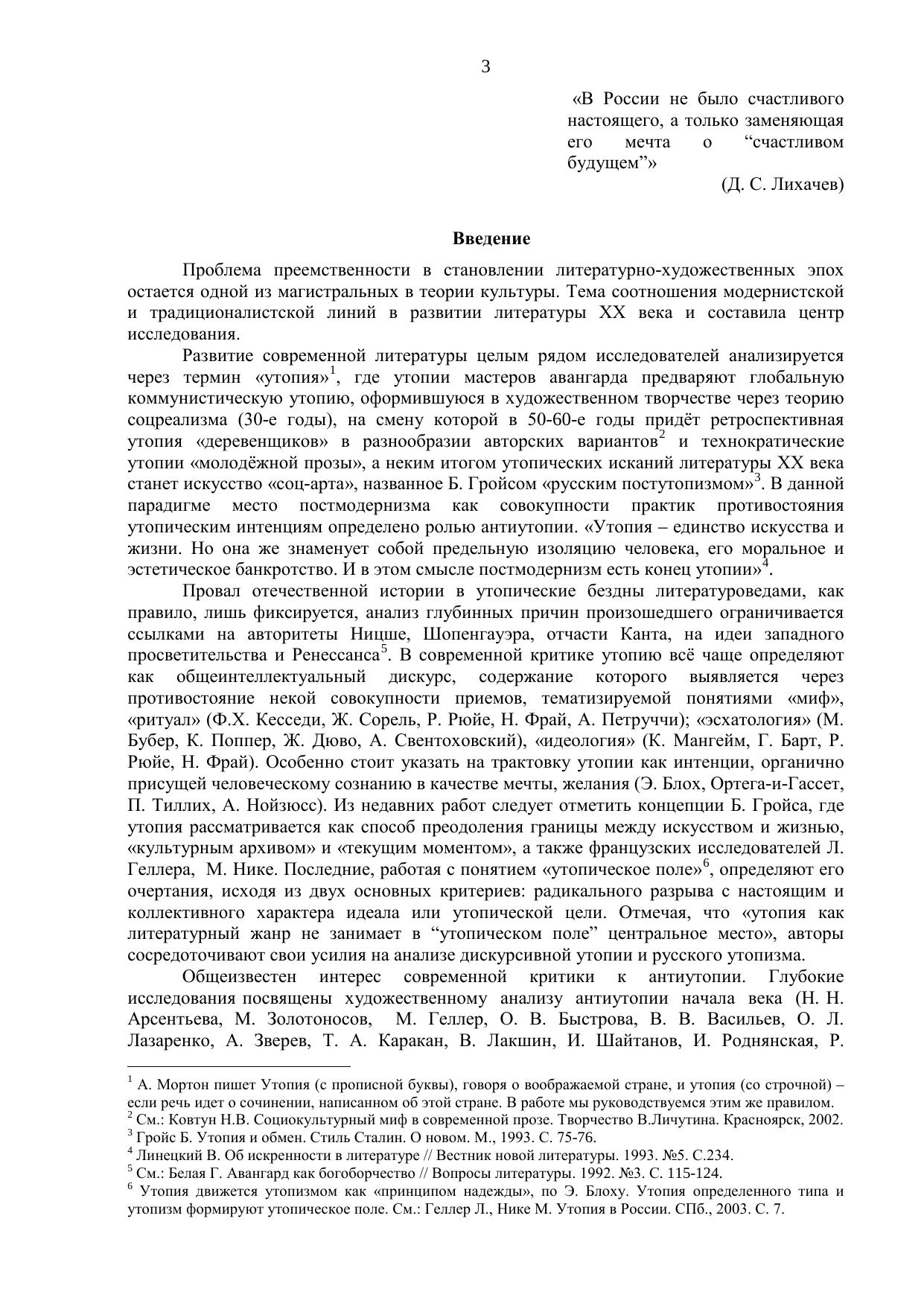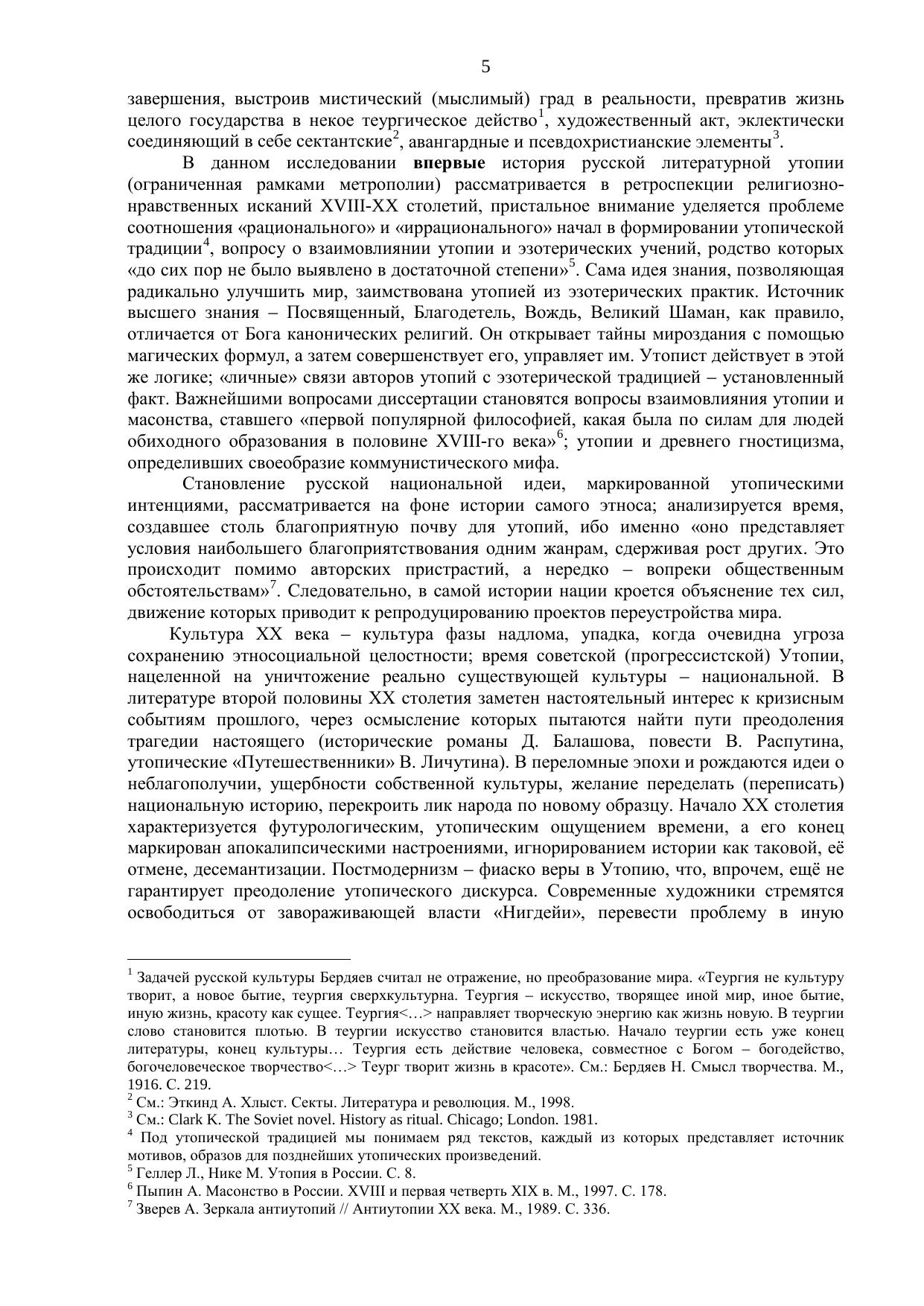 В центр исследования выдвигается вопрос о роли, значении, художественных особенностях именно «позитивной» русской утопии, о её связях с архетипами народного утопизма, специфике и перспективах развития. Подчеркивается условность жёсткой границы между утопией и антиутопией; выделяется ряд признаков (утопичность художественного сознания автора, своеобразие хронотопа, утопического характера, мотивной структуры), которые позволяют анализировать отечественную утопию как относительно самостоятельное и оригинальное художественное явление.