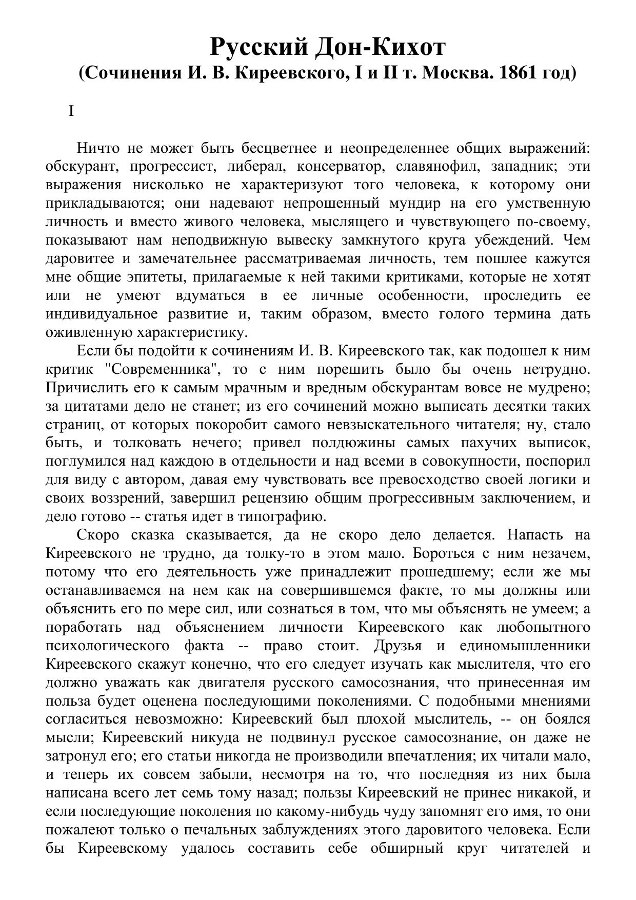 Русский Дон-Кихот (Сочинения И. В. Киреевского)
