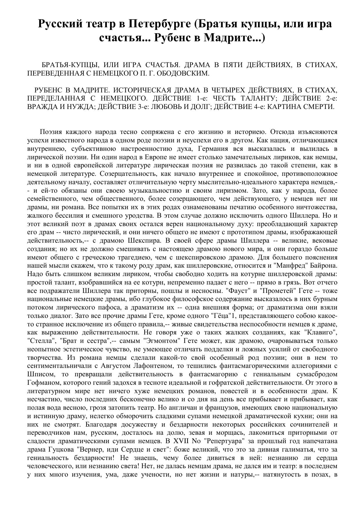Русский театр в Петербурге (Братья купцы, или игра счастья... Рубенс в Мадрите...)