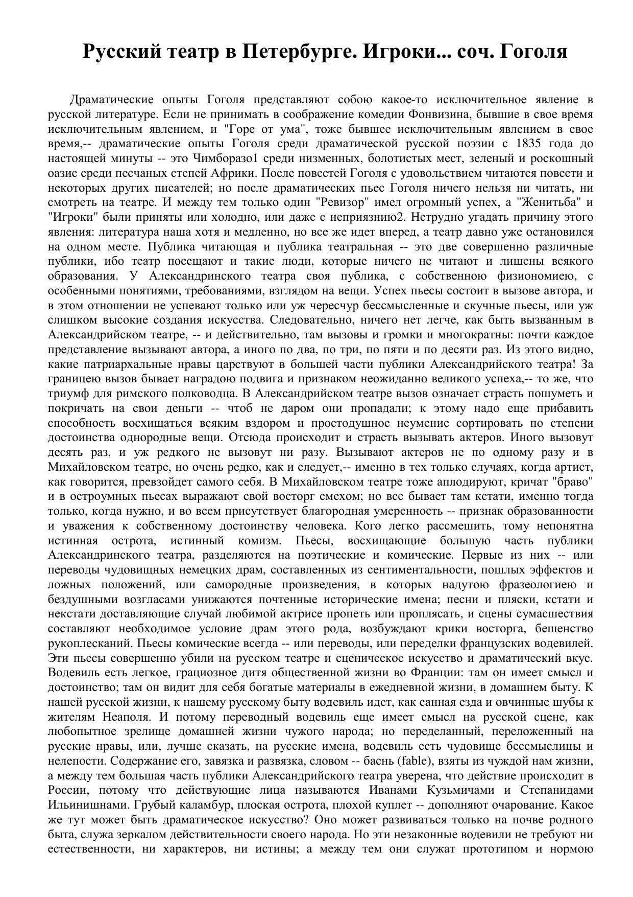 Русский театр в Петербурге. Игроки... соч. Гоголя