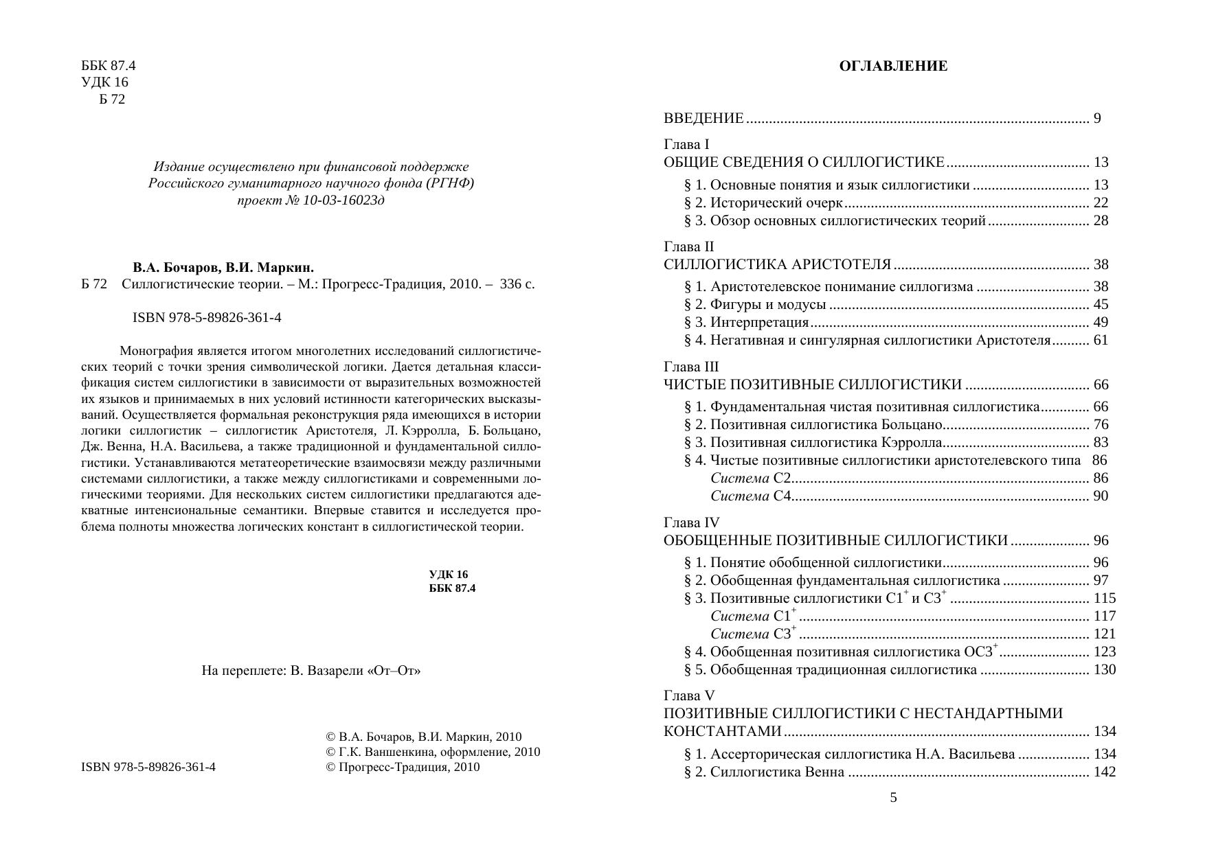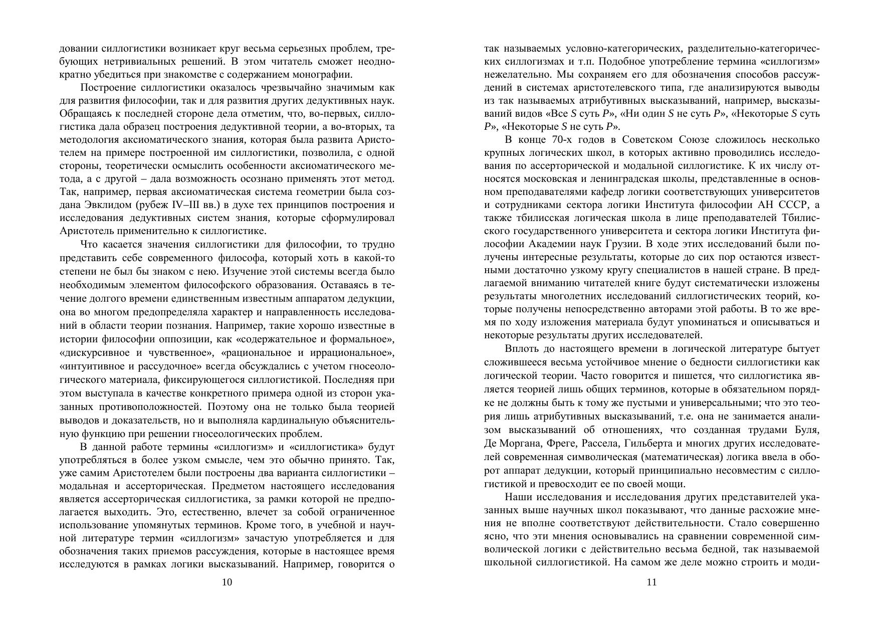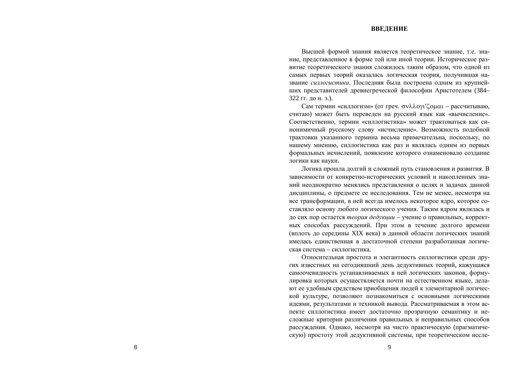 Монография является итогом многолетних исследований силлогистических теорий с точки зрения символической логики. Дается детальная классификация систем силлогистики в зависимости от выразительных возможностей их языков и принимаемых в них условий истинности категорических высказываний. Осуществляется формальная реконструкция ряда имеющихся в истории логики силлогистик - силлогистик Аристотеля, Л.Кэрролла, Б.Больцано, Дж.Венна, Н.А.Васильева, а также традиционной и фундаментальной силлогистики. Устанавливаются метатеоретические взаимосвязи между различными системами силлогистики, а также между силлогистиками и современными логическими теориями. Для нескольких систем силлогистики предлагаются адекватные интенсиональные семантики. Впервые ставится и исследуется проблема полноты множества логических констант в силлогистической теории.