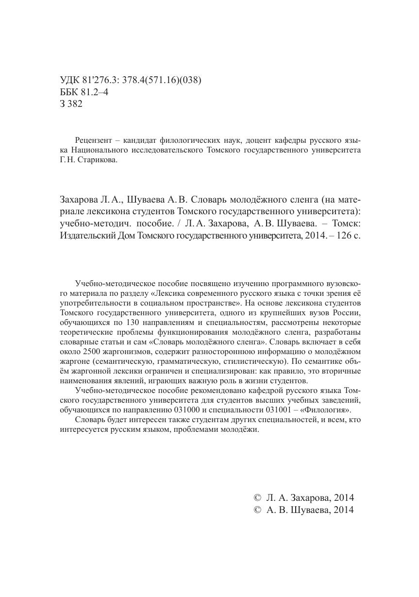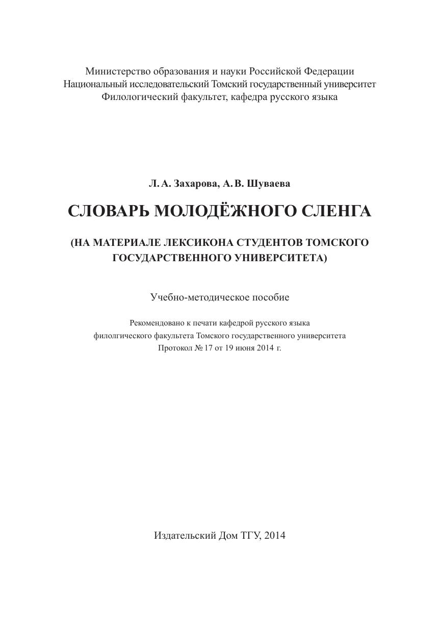 Словарь молодёжного сленга (на материале лексикона студентов Томского государственного университета)
