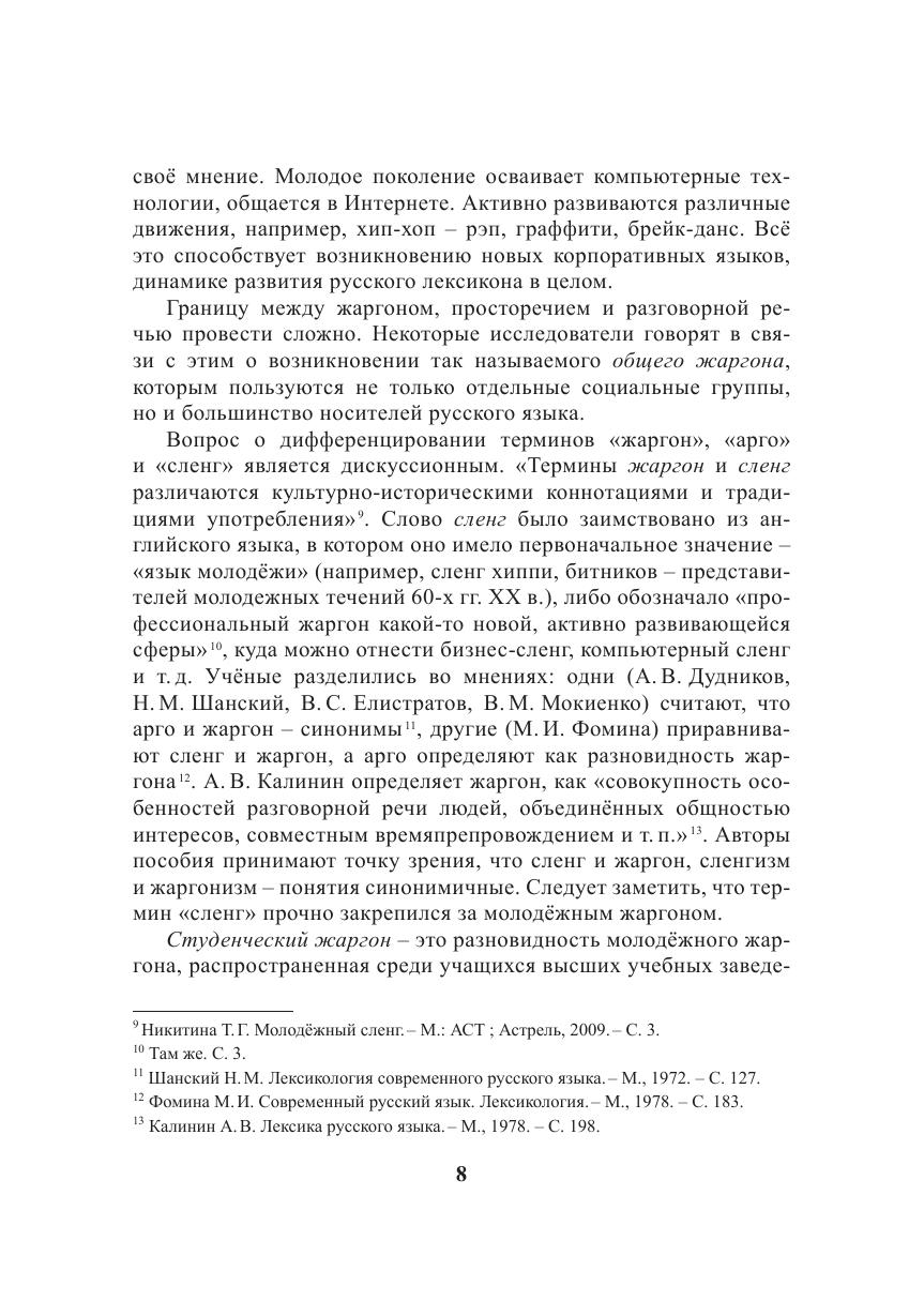 Учебно-методическое пособие посвящено изучению программного вузовского материала по разделу «Лексика современного русского языка с точки зрения её употребительности в социальном пространстве». На основе лексикона студентов Томского государственного университета, одного из крупнейших вузов России, обучающихся по 130 направлениям и специальностям, рассмотрены некоторые теоретические проблемы функционирования молодёжного сленга, разработаны словарные статьи и сам «Словарь молодёжного сленга». Словарь включает в себя около 2500 жаргонизмов, содержит разностороннюю информацию о молодёжном жаргоне (семантическую, грамматическую, стилистическую). По семантике объём жаргонной лексики ограничен и специализирован: как правило, это вторичные наименования явлений, играющих важную роль в жизни студентов. Учебно-методическое пособие рекомендовано кафедрой русского языка Томского государственного университета для студентов высших учебных заведений, обучающихся по направлению 031000 и специальности 031001 – «Филология». Словарь будет интересен также студентам других специальностей, и всем, кто интересуется русским языком, проблемами молодёжи.