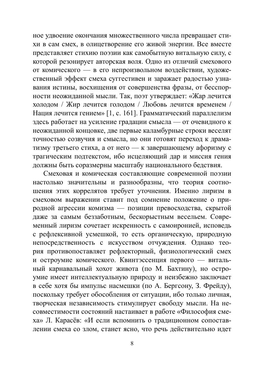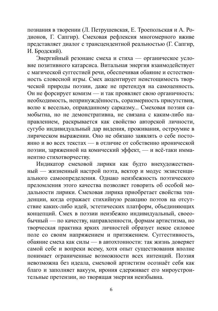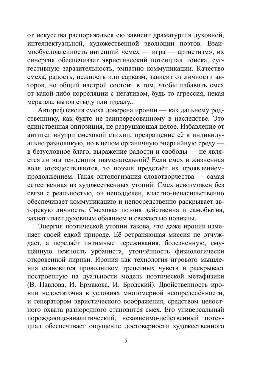 Издание предлагает анализ разнообразных форм художественного самосознания и самовыражения в смеховом модусе (лирика и драма, мистификация и метафизика). Смех поэтов генерирует целостное, жизнетворческое миропонимание, направляет эвристическую волю, ирония выражает рефлексию процесса. Рассматриваются психологические предпосылки смехового мировосприятия, влияние культурного контекста и роль иронии в жизненном и интеллектуальном поиске в условиях неопределённости. Для филологов и всех, кто интересуется современной русской поэзией.