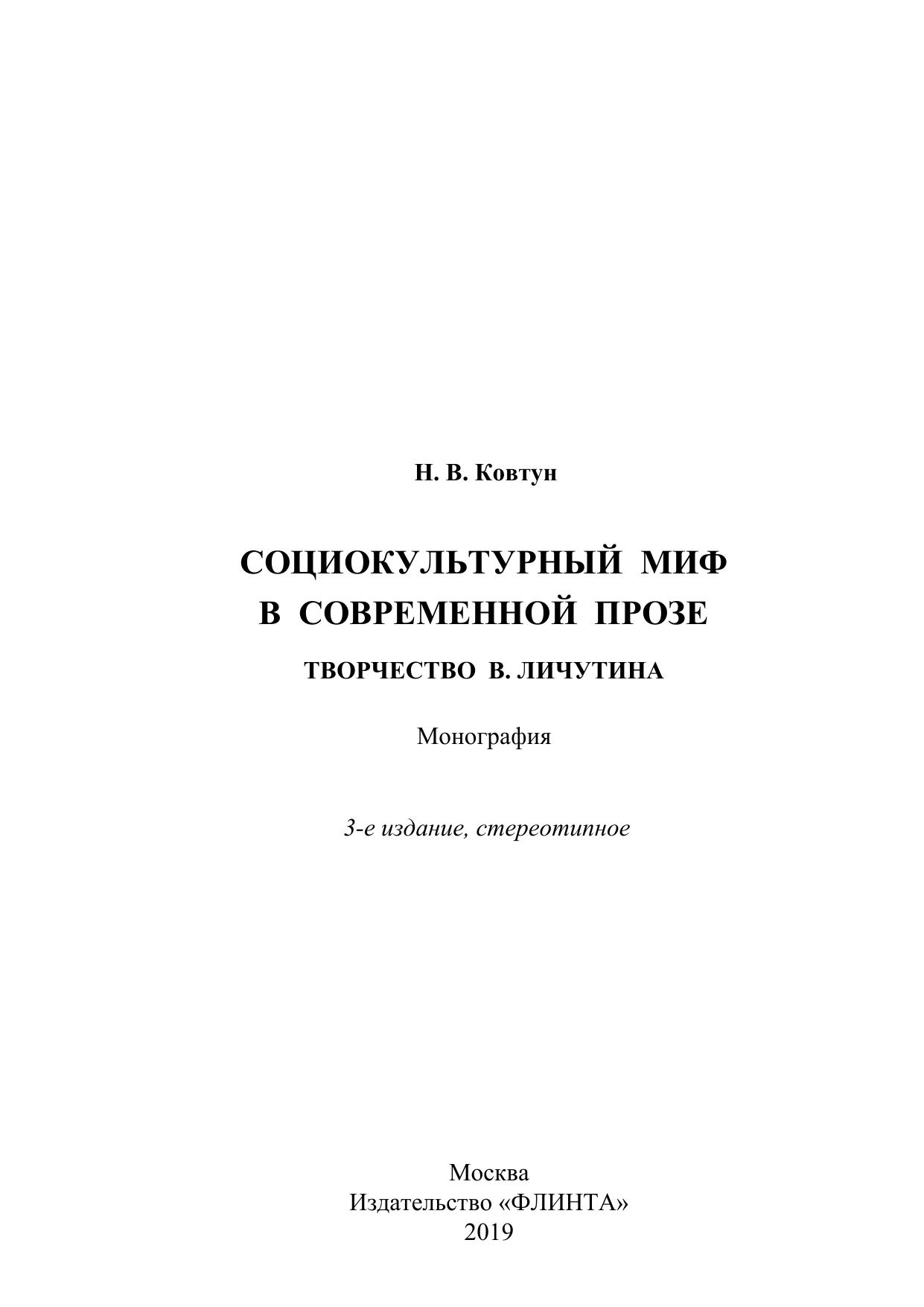 Социокультурный миф в современной прозе. Творчество В. Личутина